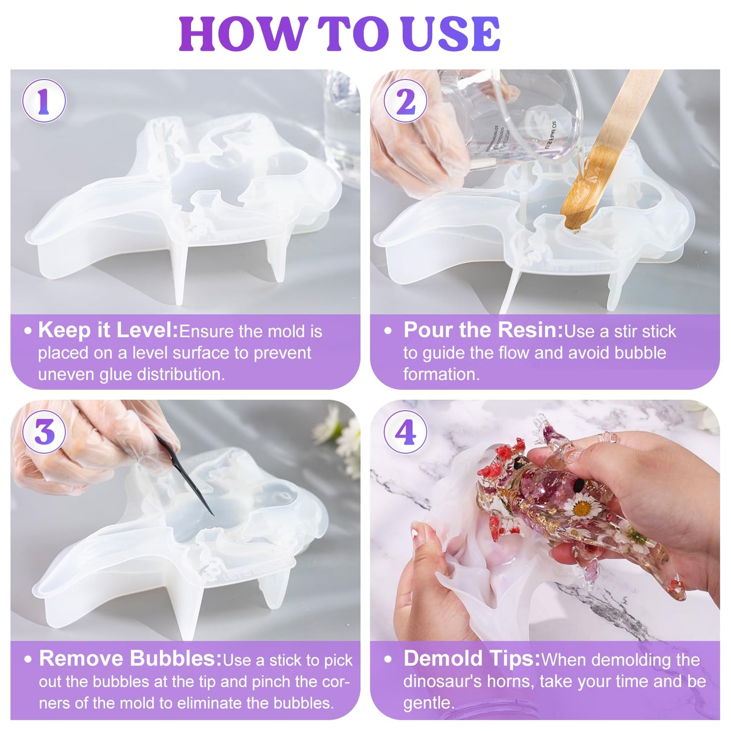 - TIPS OF USE: (1)You should use a stirring stick to assist in pouring the resin. After the resin covers the silicone molds for crafts, press the resin molds silicone clearance with your hand to eliminate bubbles.(2)You can also use a stick or resin bubble remover to remove bubbles. Avoid using a lighter or heat gun directly on the mold, as it may damage the silicone molds for resin.(3)When demolding, avoid using too much force. Start at the edges and gently release the resin animals. For an easier release, use alcohol or water as a lubricant.