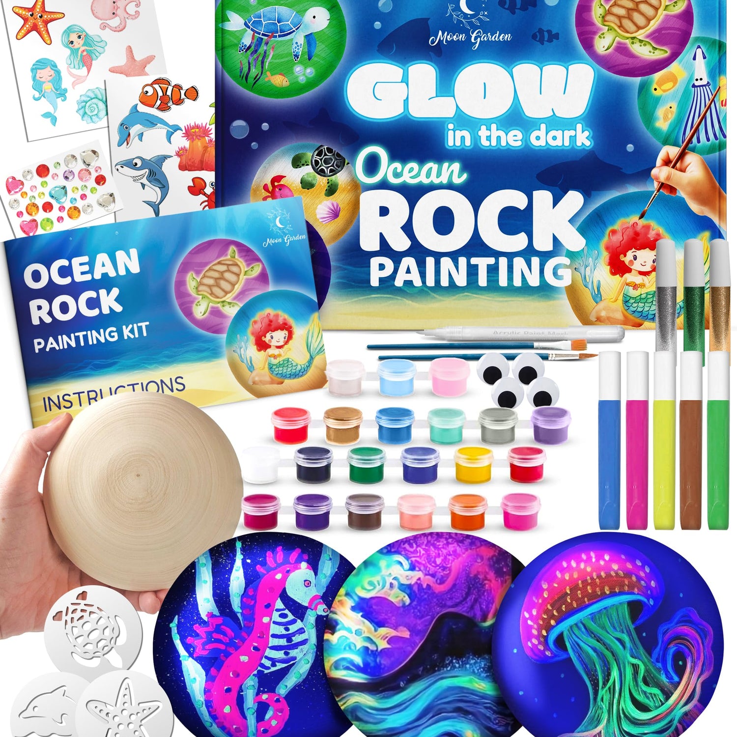 Glow in The Dark Ocean Rock Painting Kit, Arts and Crafts Painting Rocks for Kids, Kids Craft Paint Kits, Craft Activities Kits, Arts and Crafts Gifts for Boys Girls, Birthday Gift, Ages 6 and up