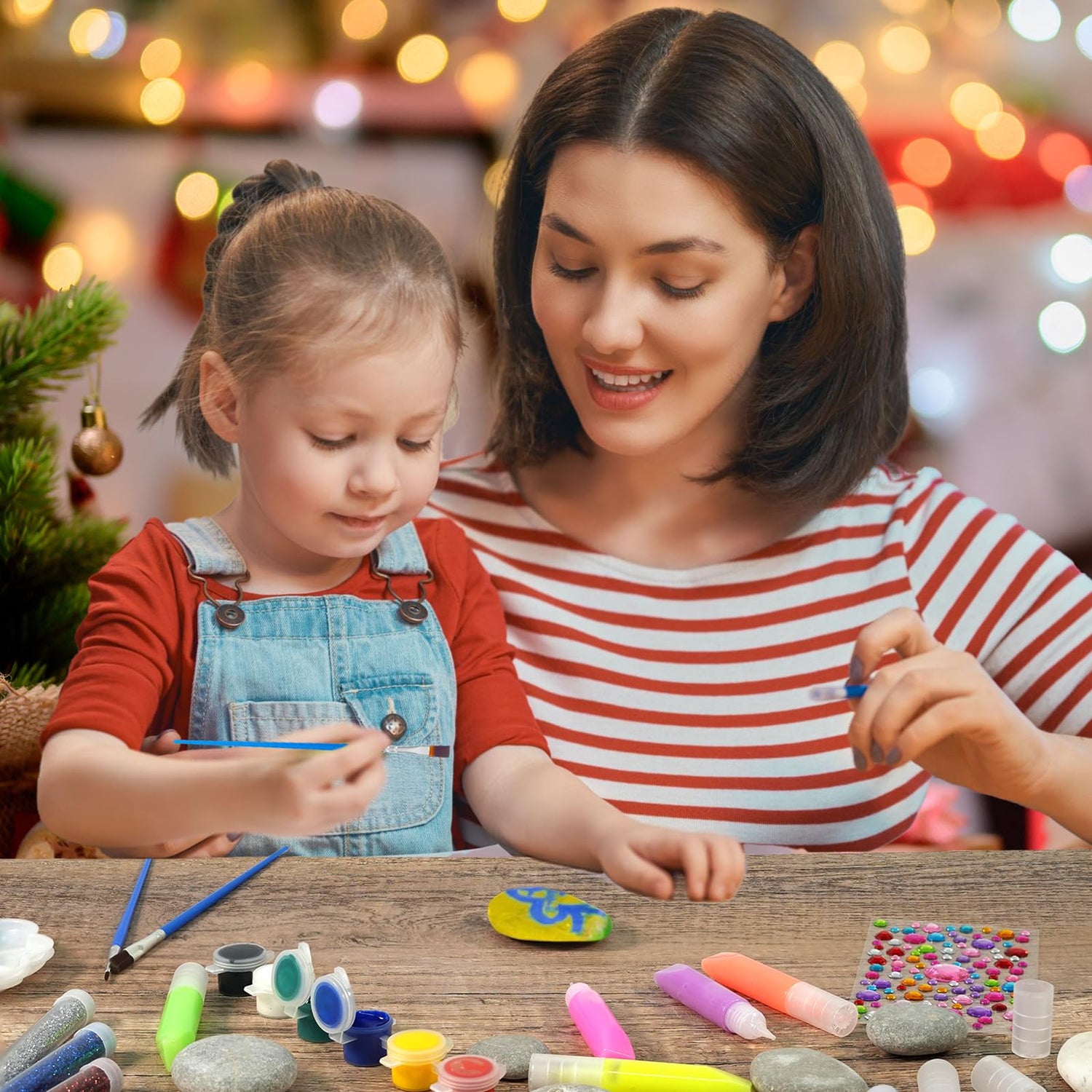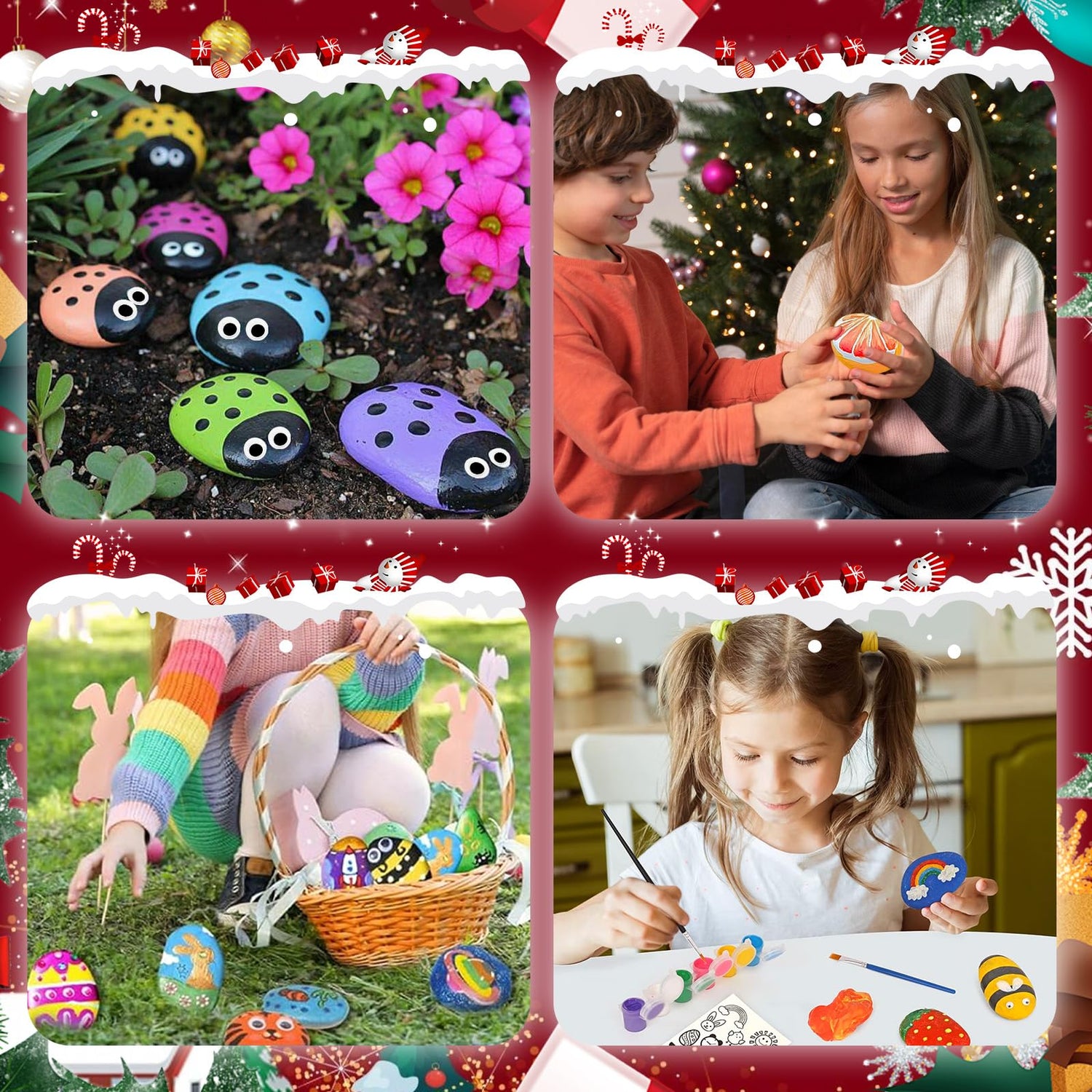 • WIDE APPLICATIONS: Using rock as canvases offers a sturdy foundation for young artists to express and create impressive artwork. These rock art supplies has a wide range of applications, suitable for art projects, family crafts activity, gifts exchange, Christmas Stocking Stuffers, Easter, Halloween, coloring gifts, birthdays and so on.