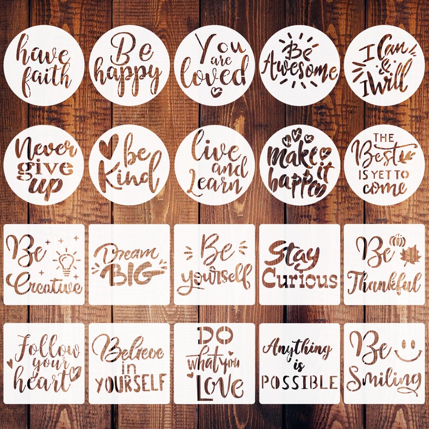 - 🎨Word Stencils Set: You will receive 20 pieces different inspirational word stencils in the shape of circle and square. Each stencil measures about 2.5 x 2.5 inches. Stencils with meaningful words can make you more confident.