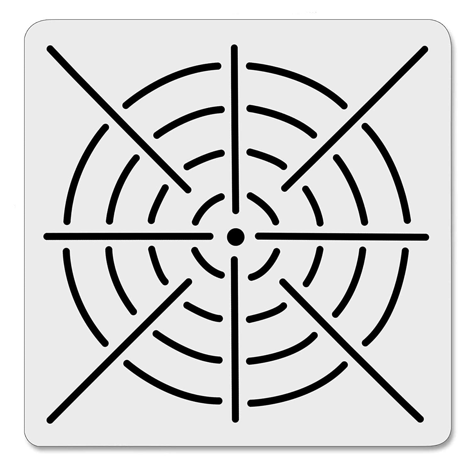 - EASY TO USE - Cutout lines are wide enough to accommodate white charcoal pencils or other temporary marking pens. Use as many or as few of the circles and t lines to keep your dots symmetrisal and vour dottina lines straight.