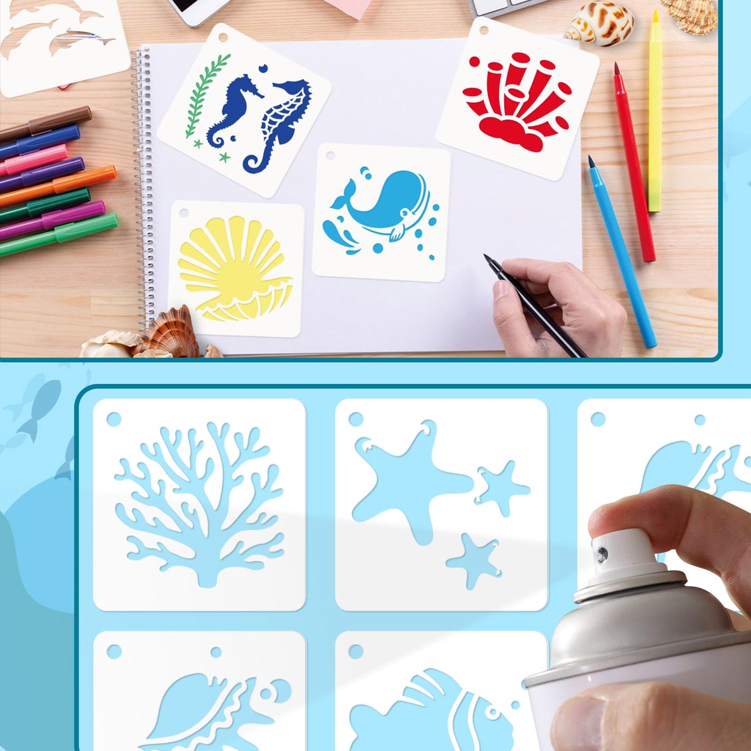 - Size: Each stencils for crafts reusable measures 3 x 3 inches and is suitable for painting . Buy the beach stencils for your, developing their imagination and creativity by matching different fish stencil. You can draw pictures with your to build a good family relationship