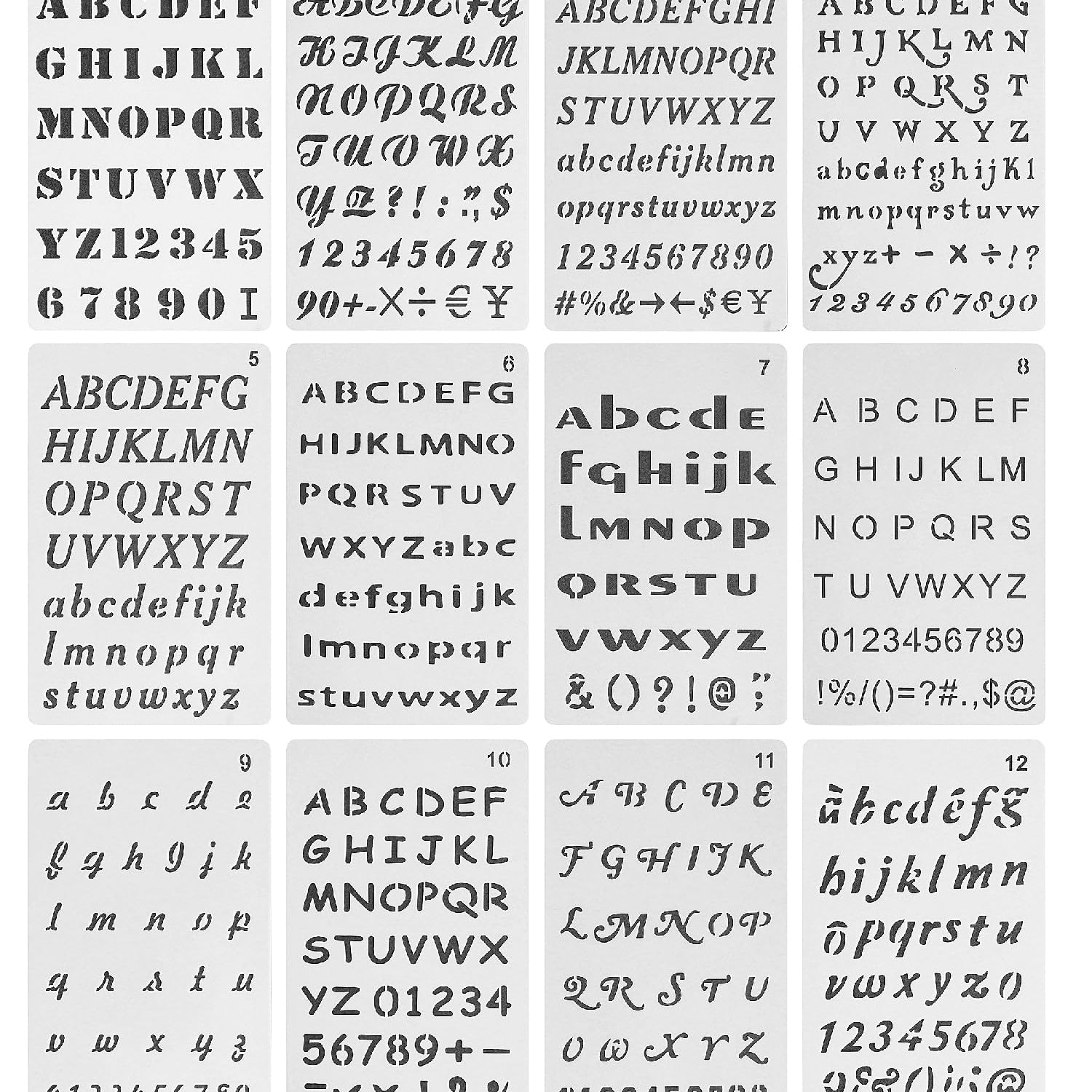 - Package Includes: 12Pc Alphabet, Number And Symbol Templat. Size Is 4 x 7 Inches