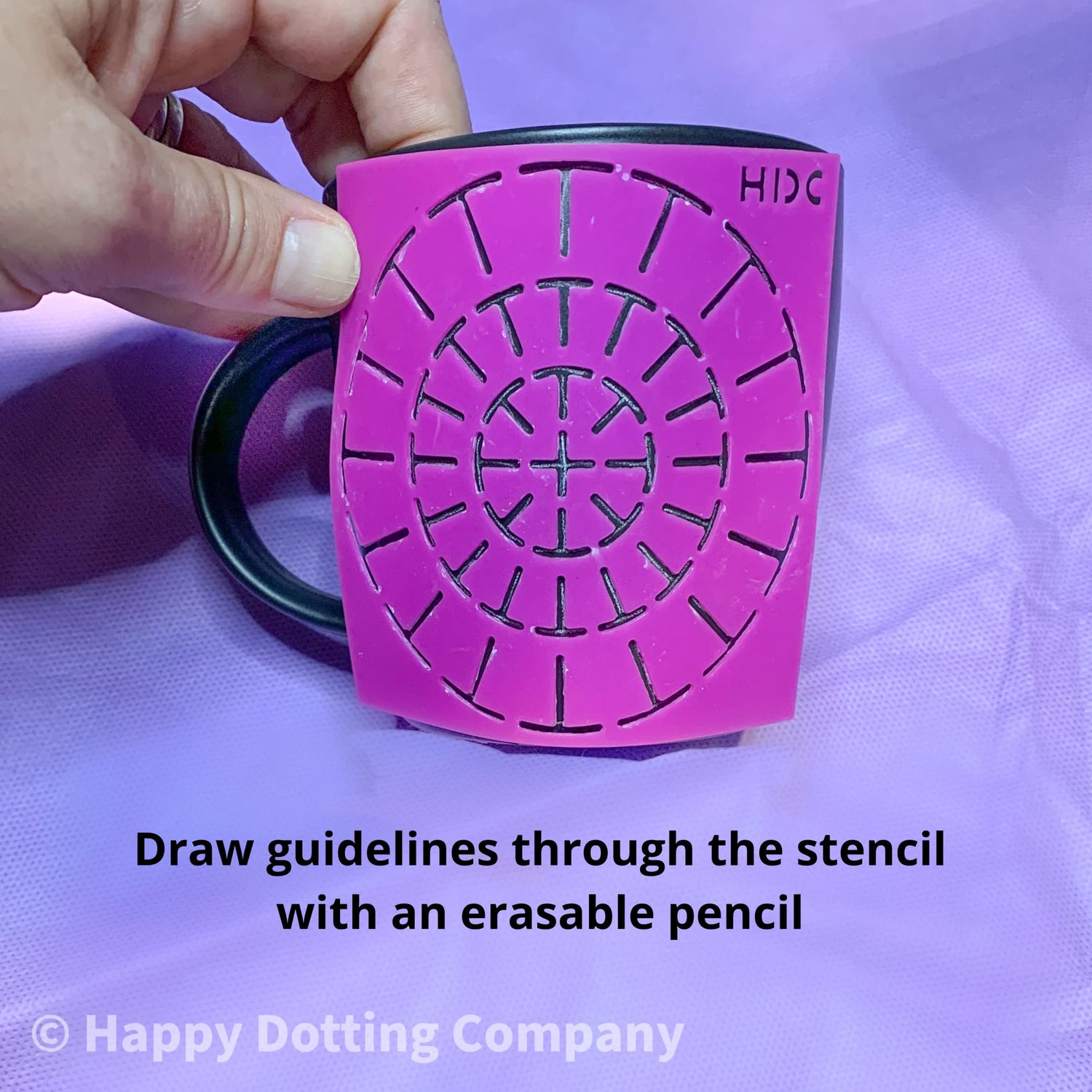 - ROBUST SILICONE stencils that will bend and flex around cylindrical surfaces like mugs and bottles
