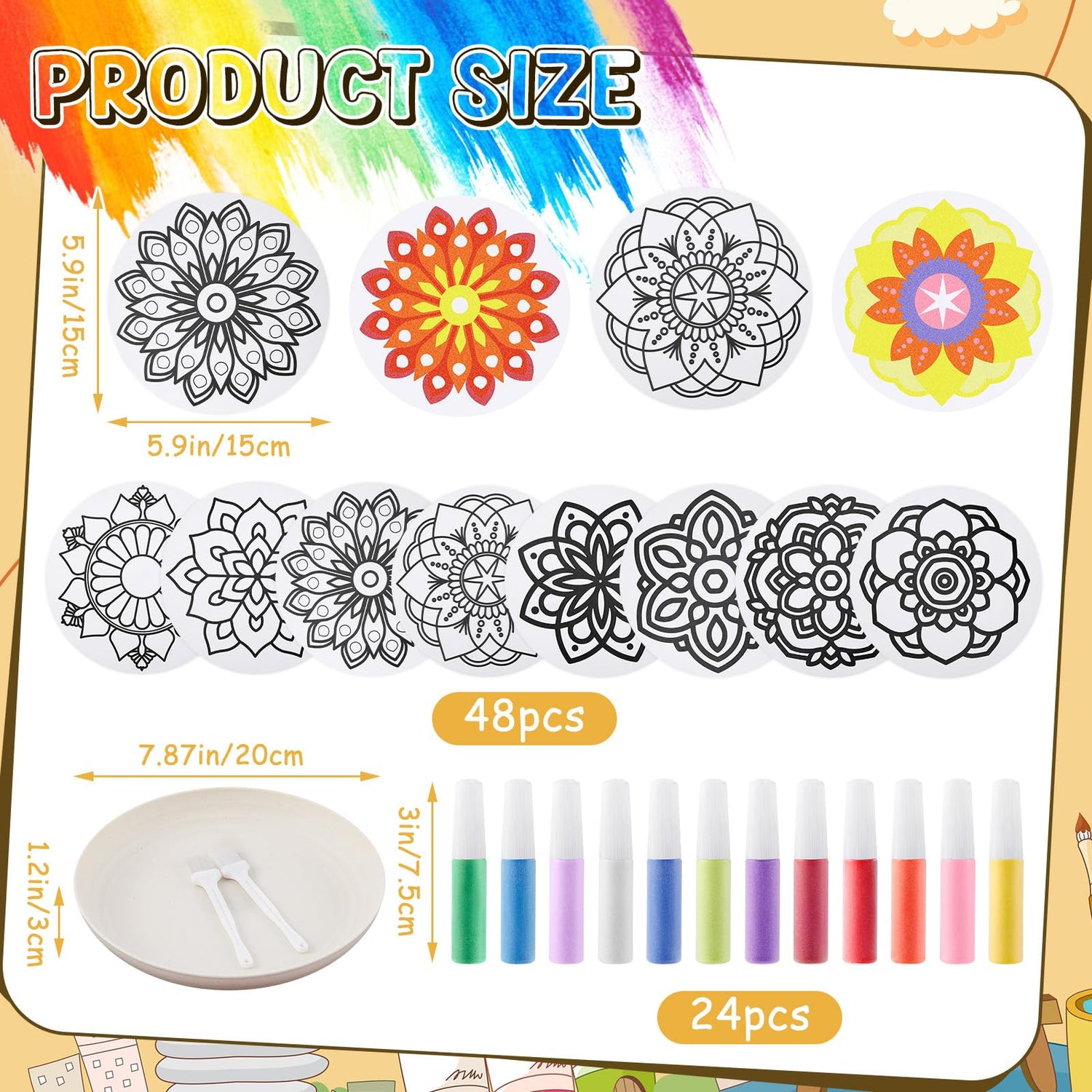 Vertintong 48 Pcs Sand Painting Mandala Coloring Craft Kits Mandala Sand Art Kits Mandala Sand Art Pictures with 24 Sand Options Creative Home Festival Party Favors Sessions