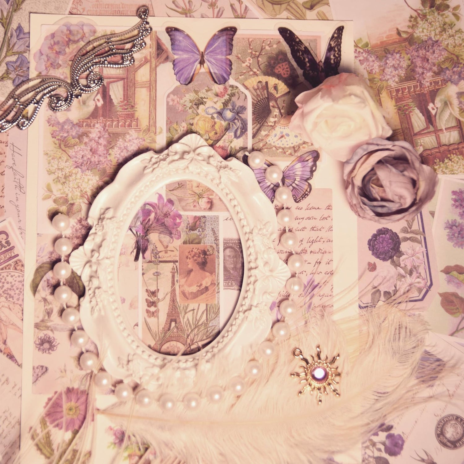 - Complete Scrapbook Set: Includes 120 vintage scrapbook paper sheets and 80 Journal Stickers featuring mushrooms, flowers, butterflies, and antique objects, perfect for junk journaling and creative projects.