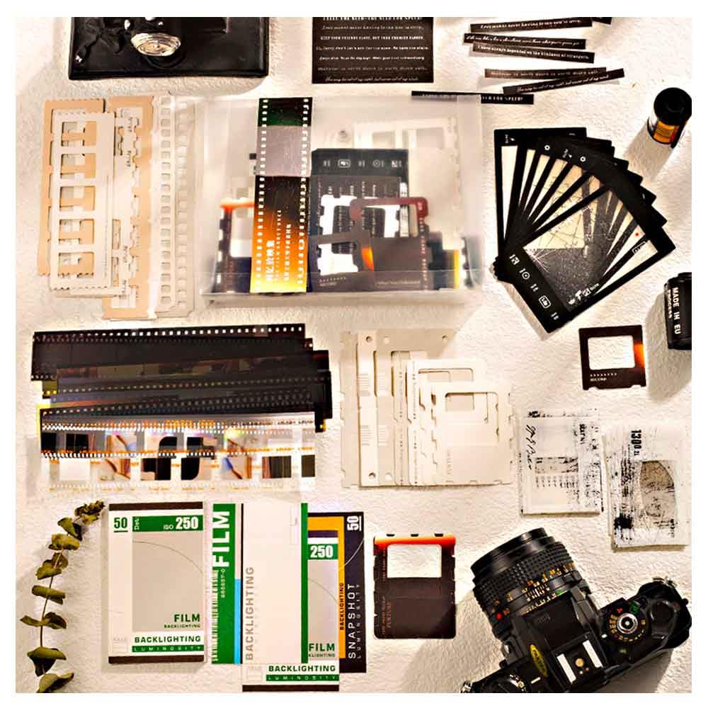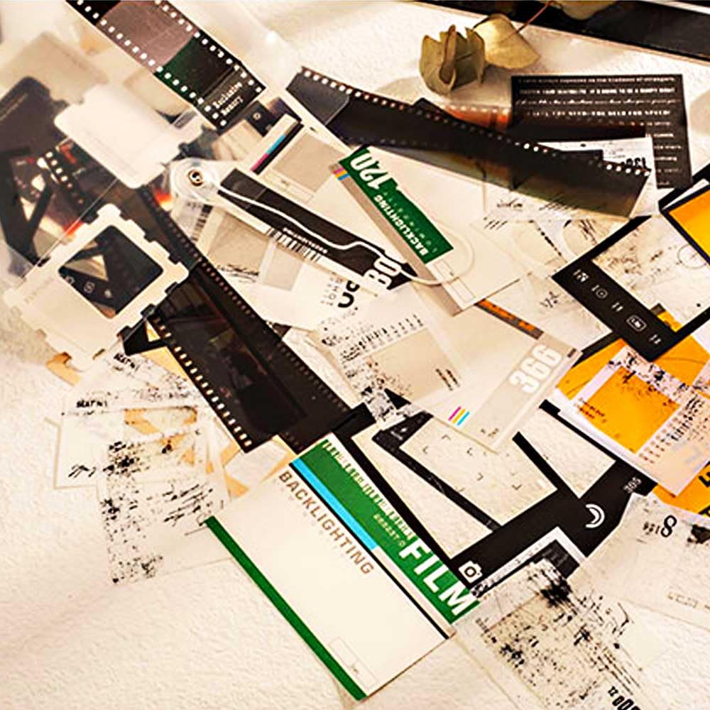 CraftBloom 94PCS Movie Film Scrapbook Paper for Journaling Supplies, Strip Photo Frame for Scrapbooking Kit, Waterproof PET Washi Quote Stickers for Bullet Junk Journal Collage Planner DIY Craft