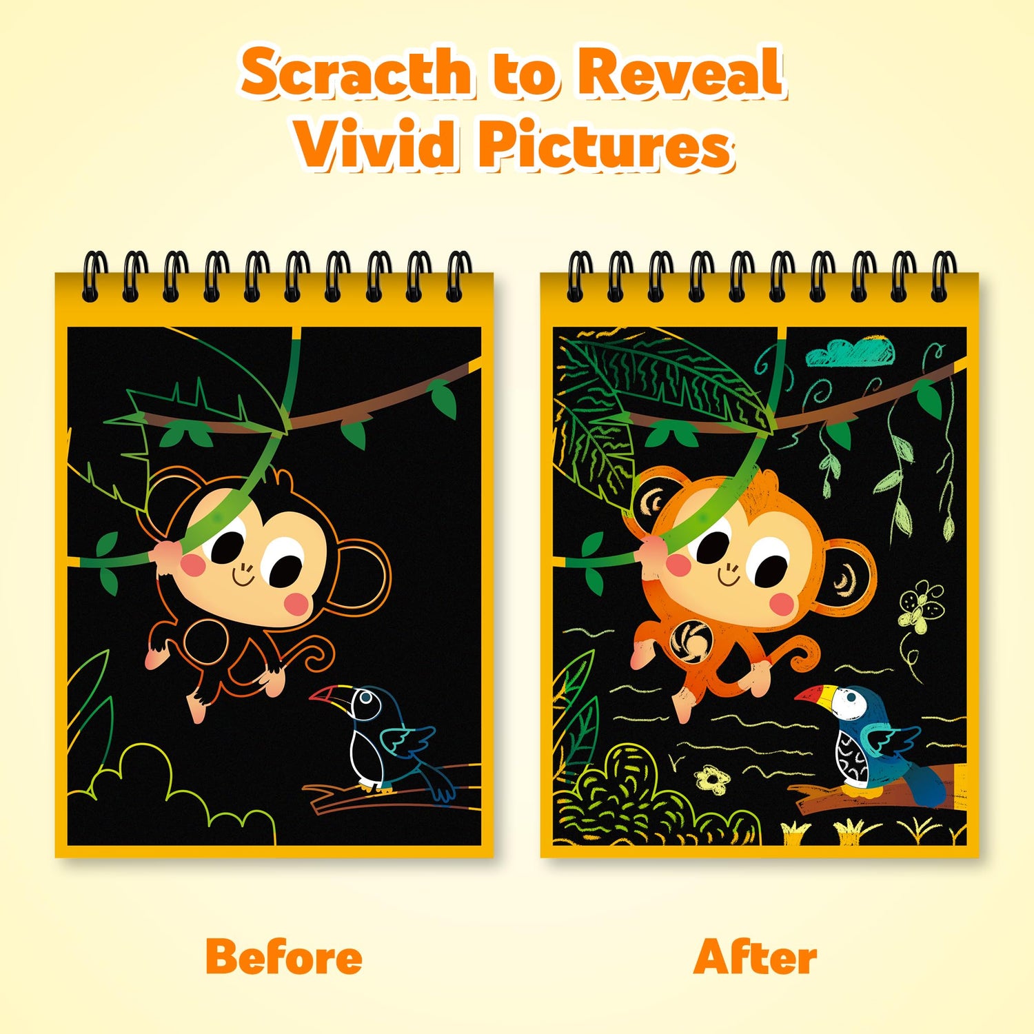 - Fosters Creativity & Skill Development: Encourage your child’s creativity with these fun scratch notebooks! The mini coloring book party favors are perfect for doodling and drawing, while also helping to develop fine motor skills, hand-eye coordination, and creative expression. Watch your child's imagination soar as they use scratch pads! All with zero screen time involved!