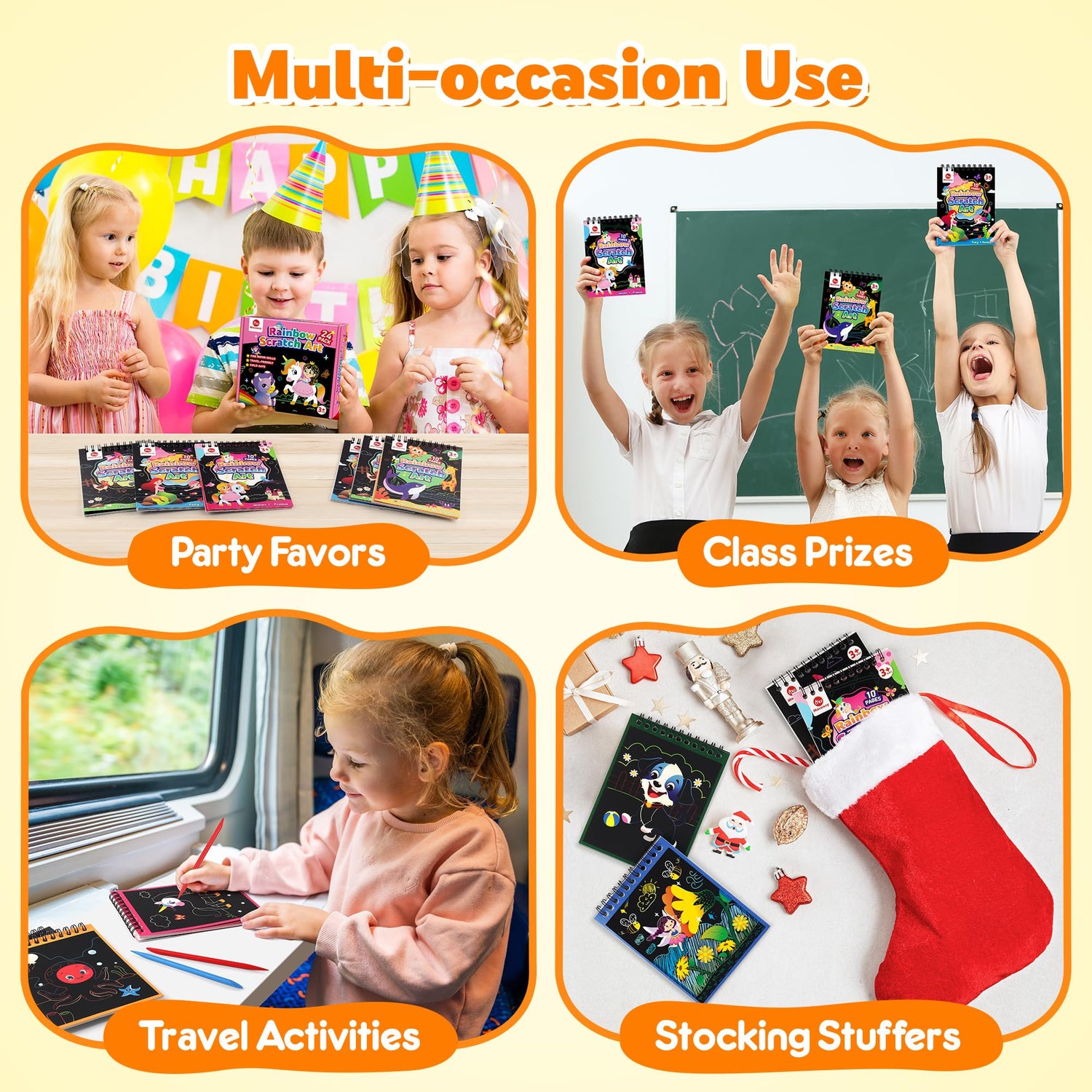 - Perfect for Party Favors & Gifts: With a large quantity of scratch drawing notebooks, these art and craft supplies are perfect for goodie bag stuffers for kids, gift for students from teacher, or birthday return gifts, educational incentives, back to school party favors and goodie bag stuffers. Affordable and high-quality, these rainbow scratch books are an excellent way to provide kids with hours of artistic fun, guaranteeing giggles and smiles at any celebration!