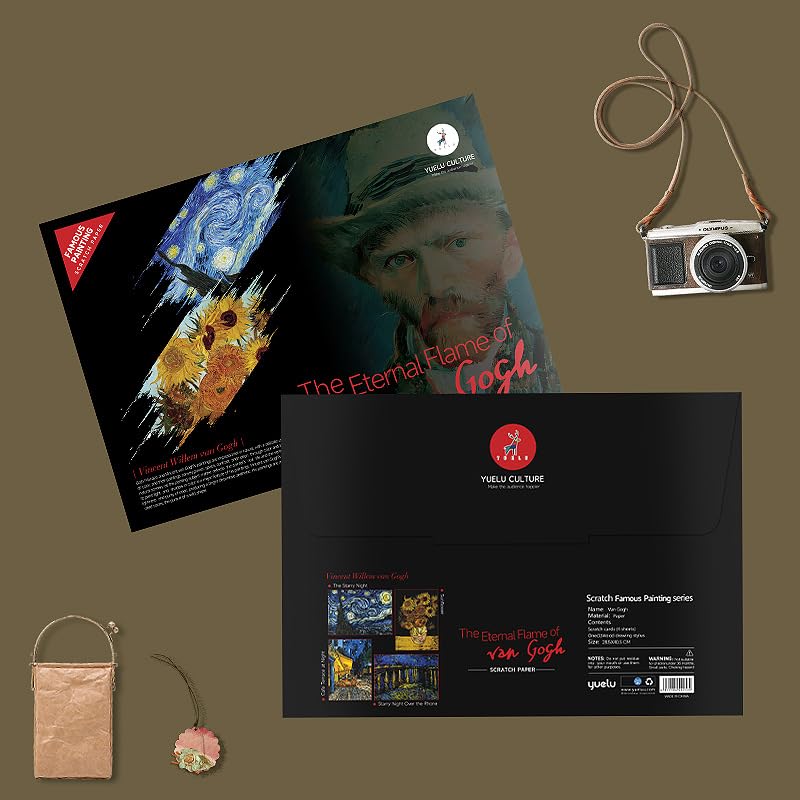 - 【PACKAGE INCLUDING】: 4 x Scratch (Drawing BoardCafe Terrace at Night - Sunflowers - Starry Night Over the Rhone - The Starry Night), 2 x Scratch Pen, 1 x Clean Brush - 16 x 11.2 inch
