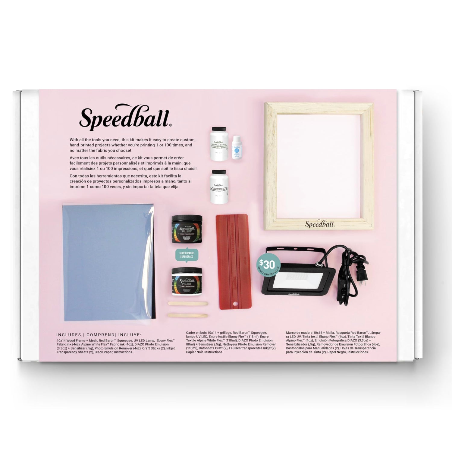 Speedball Complete Photo Emulsion Screen Printing Kit - Includes 10 × 14 in Frame, 30 W LED Exposure Lamp, Flex Fabric Inks , Diazo Solution, Remover, Transparencies