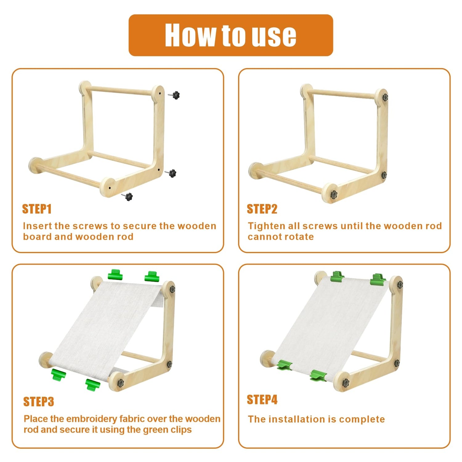 - Effortless Setup & Enhanced Stability: No tools required! Assemble in minutes with included screws and step-by-step instructions. The flexible plastic clips grip fabric tightly without damage, and the sturdy wooden base prevents slipping. Easily roll up large projects or custom sizing—perfect for intricate or expansive designs