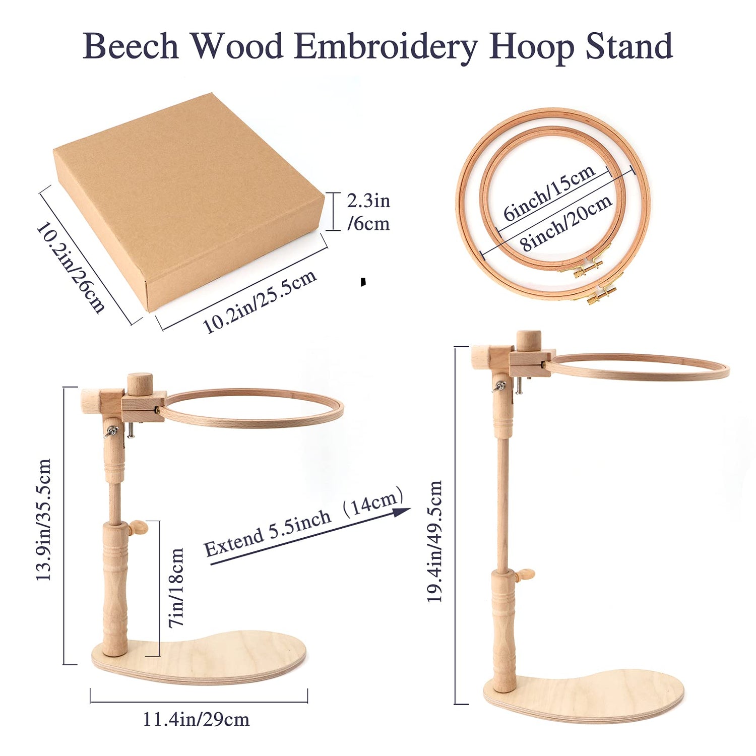 ZOCONE Beech Wood Adjustable Rotated Embroidery Hoop Stand with 2 Pcs 6'' 8'' Embroidery Hoops, Wooden Embroidery Stand, Embroidery Hoop Holder for Cross Stitch and Embroidery Project (A)
