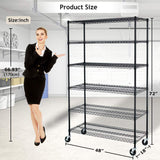 - đăDimensions-Material-Capacity]:-72âH x 48"W x 18"DïŒw/wheelsïŒstorage shelving made of rustproof and oxidation resistance steel construction, resist dirt buildup and corrosion. Huge capacity hold a ton of stuff and a lot of weight, the per unit weight capacity on feet levelers is 800lbs (no casters), But max entire unit weight capacity is 600lbs on wheels(w/casters) ; đ Note that the limit on the weight it will hold depends on if you are using the casters or not, and it is a big difference.