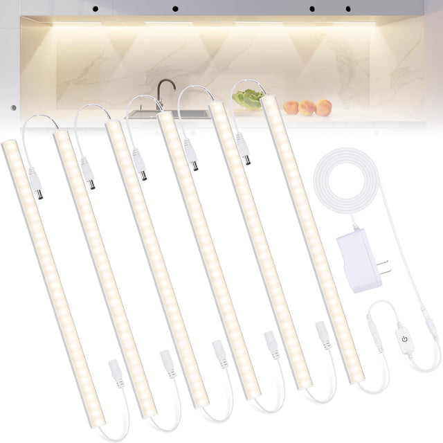 6PCS x 12 inch Under Cabinet LED Lights 4500K, Dimmable Under Counter Lights for Kitchen, Led Under Cabinet Lighting, Plug-in Under Cabinet Lights with Memory Function, Daylight White