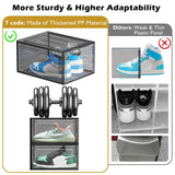7 code Thicken & Sturdy Clear Shoe Storage Organizer with Magnetic Door, Stackable Boxes for Closet, Foldable Shoe Rack for Sneaker Boot Container, Plastic Shoe Cabinet Shoe Box 6 Pack, Black
