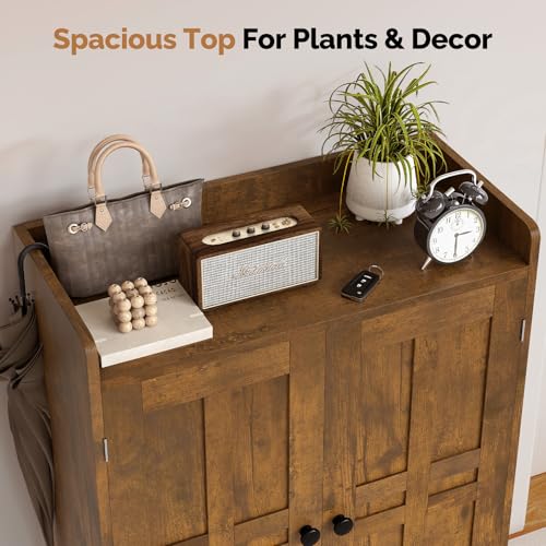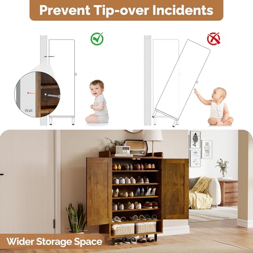 Aivermeil Farmhouse Shoe Cabinet with Doors, 6-Tier Wooden Shoe Organizer with Adjustable Shelves, Entryway Storage Cabinet, Rustic Shoe Storage for Entryway or Living Room (Rustic Brwon)