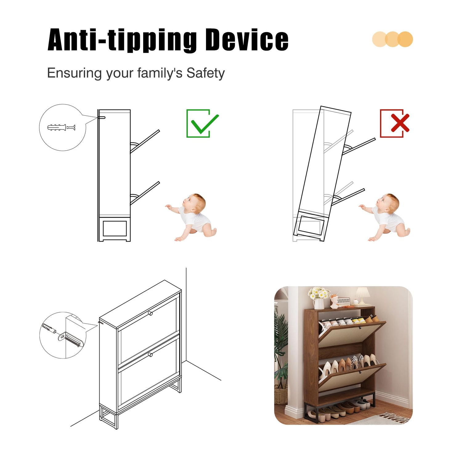• Convenient Flip Drawer: Featuring a convenient flip drawer design, this flip drawer shoe cabinet allows for easy access to your footwear, making it an ideal shoe closets for busy households where quick retrieval is essential.