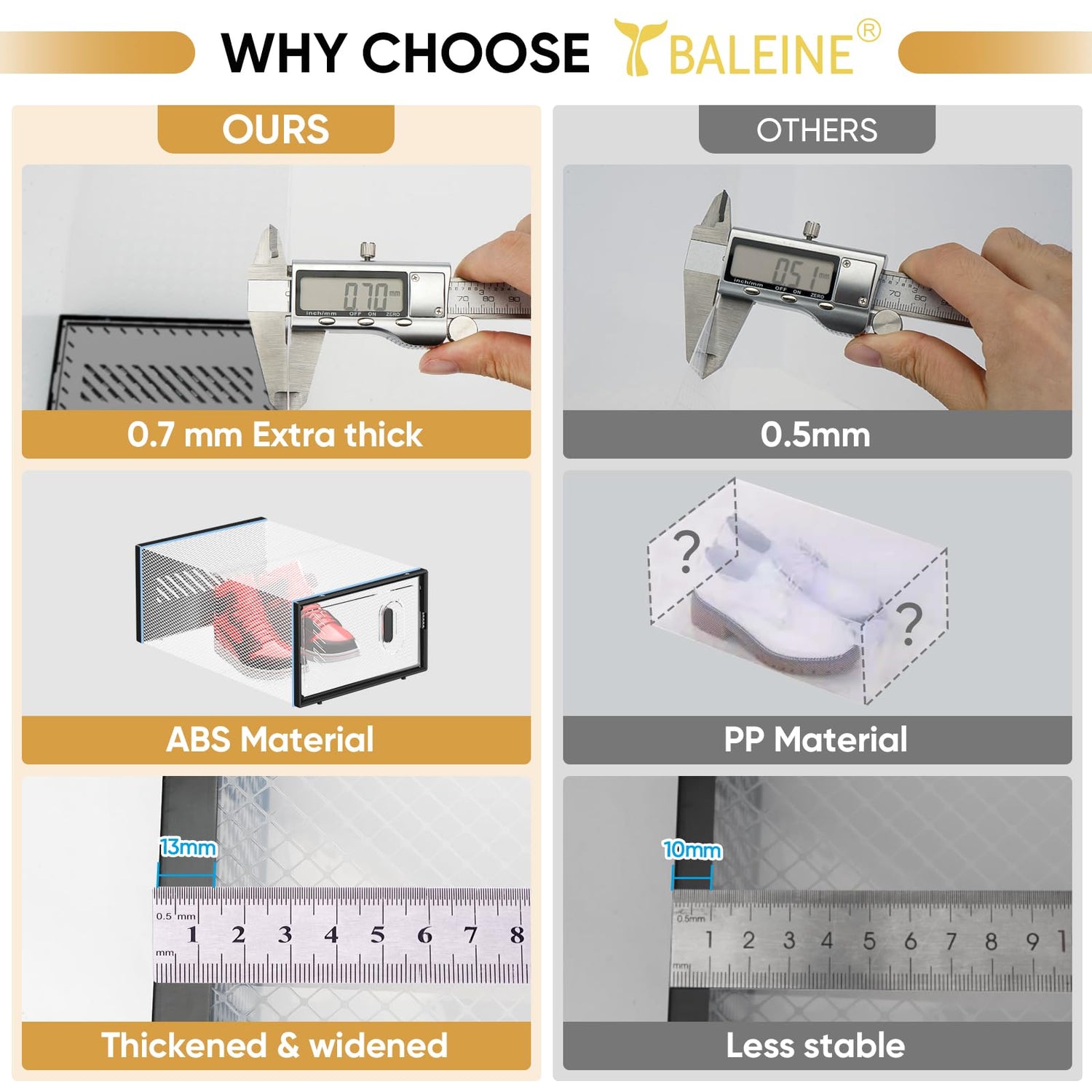 - [THICKENED MATERIAL] Clear shoe boxes are crafted from BPA-free thickened ABS and PP material, ensuring durability and longevity. They are sturdy and able to withstand daily use without cracking or breaking. Multiple ventilation holes on the back of the shoe case to ensure air circulation and prevent odors.