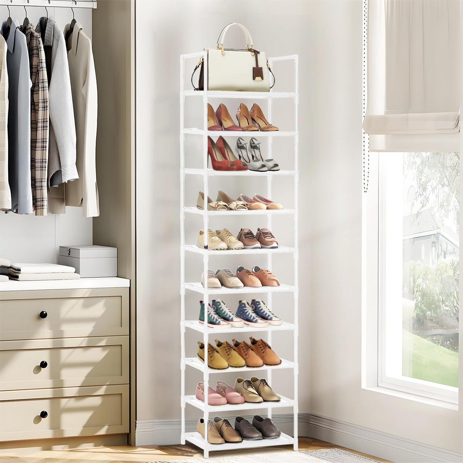 barsone Shoe Rack 10 Tiers, 20-25 Pairs Shoe Organizer Storage Shelf Stand Tower Shoe Rack, Space Saving Shoe Shelves Narrow Free Standing Shoe Rack for Closet Entryway Hallway Apartment Garage(White)