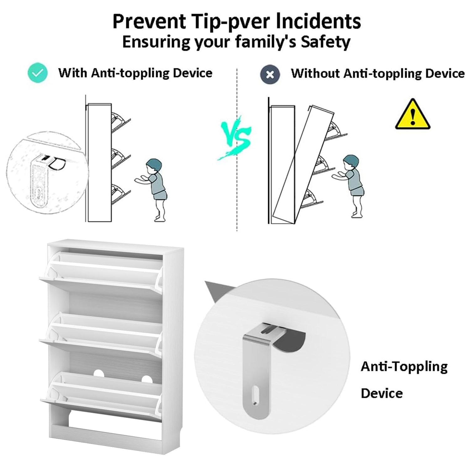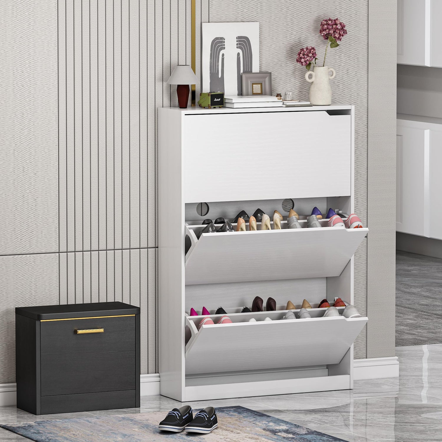 Boonatu Shoe Cabinet Storage for Entryway, Shoe Cabinet Storage with 3 Flip Drawers, Shoe Cabinet for Entryway Slim Space, 3 Tier White Shoe Cabinet Freestanding Wood Shoe Rack for Entryway, Hallway