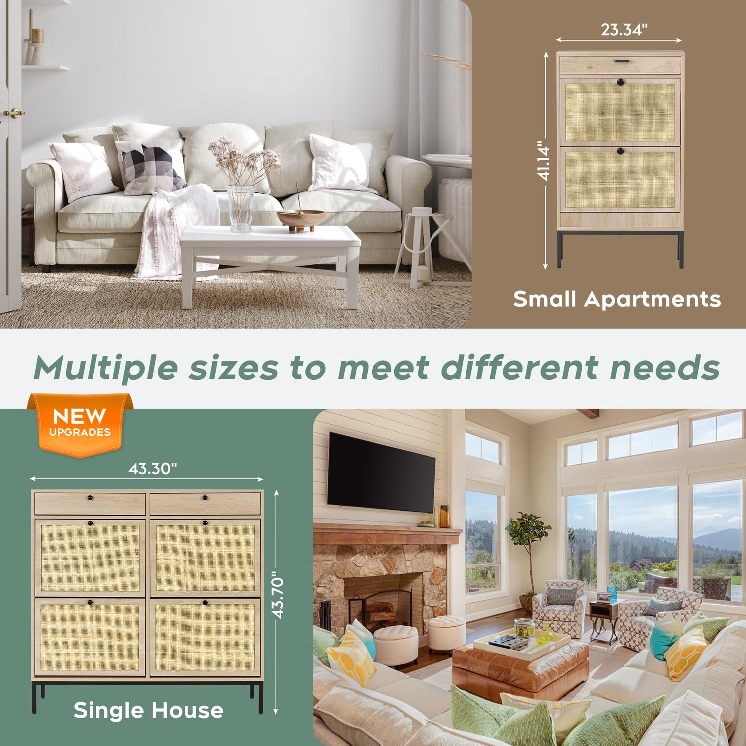 - 【Close to Modern Life】: The rattan surface is designed with a more natural ambience than a traditionally constructed shoe cabinet. Featuring a 7.08" height bottom space and height-adjustable foot knobs, it not only stores shoes, but also allows cleaning by a sweeper Robot. Suitable for your smart home life.