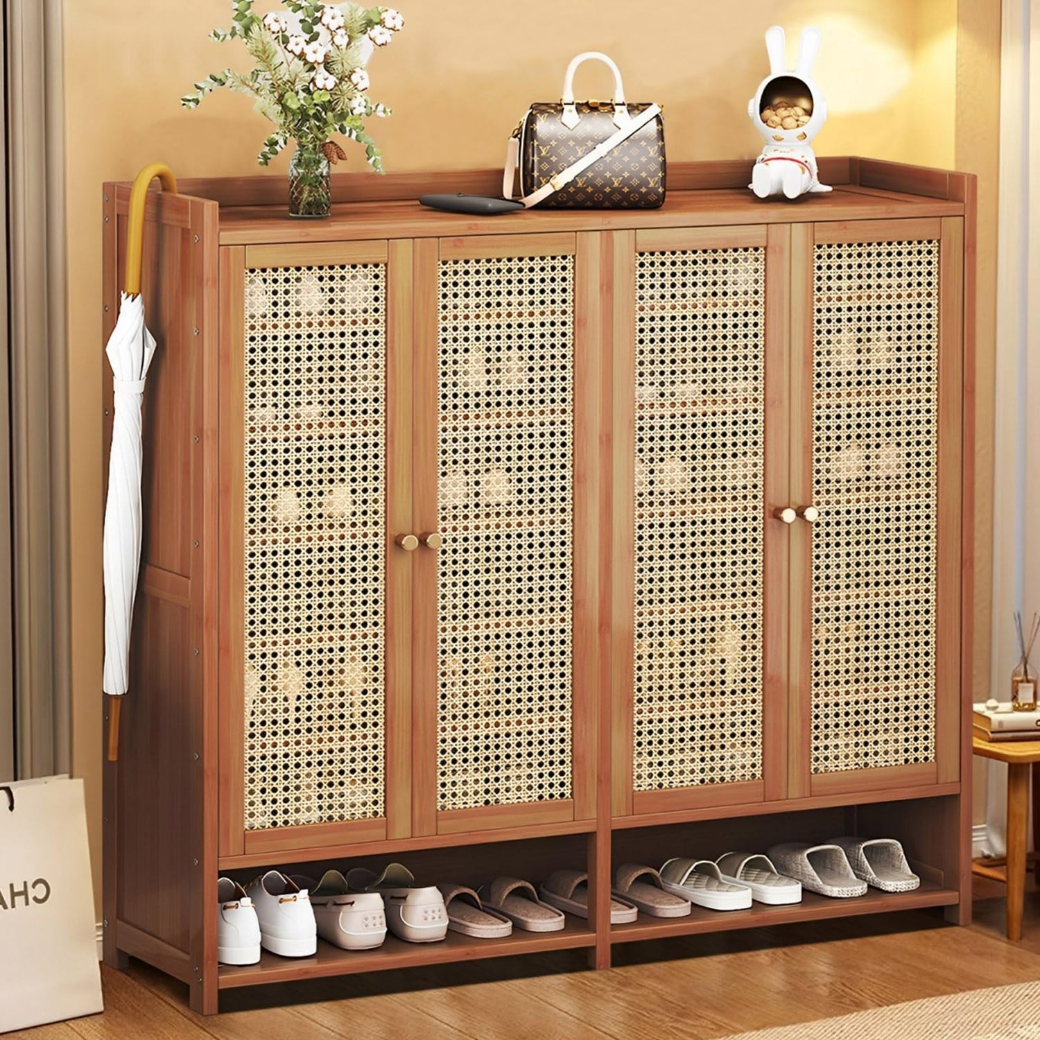 BVOUVOI Bamboo Shoe Storage Cabinet, 8 Tier Freestanding Shoes Heels Sneakers Shoe Rack Shelf for 36-40 Pairs, Entryway Shoe Cabinet with Doors for Hallway Living Room (Brown)