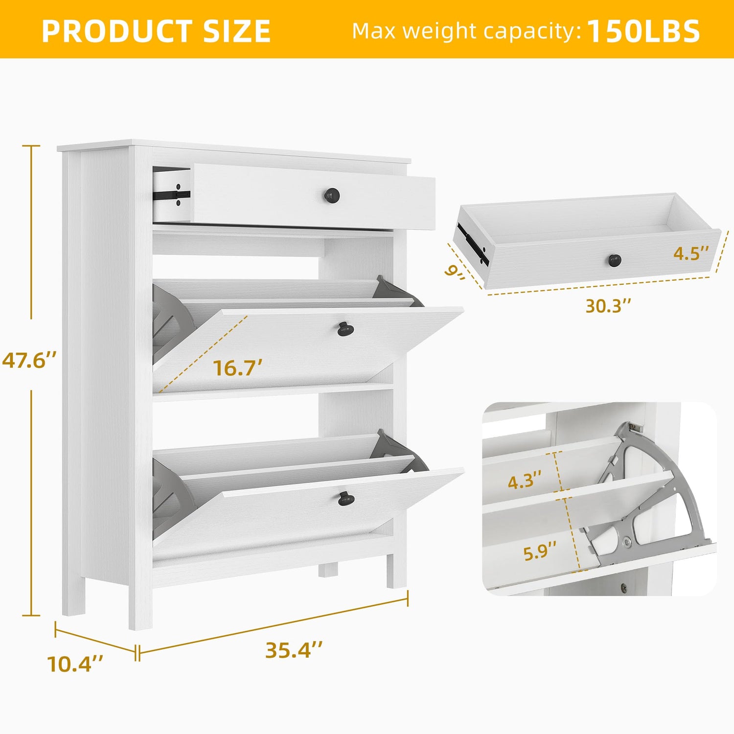 - Hidden Flip Design: This free standing shoe storage cabinet comes with 2 hidden flip drawers. Compared to regular shoe racks, it can save space and keep the entrance and porch clean and tidy. And it can keep your shoes away from dust, water stains, and sun exposure, preventing pets from dragging and biting