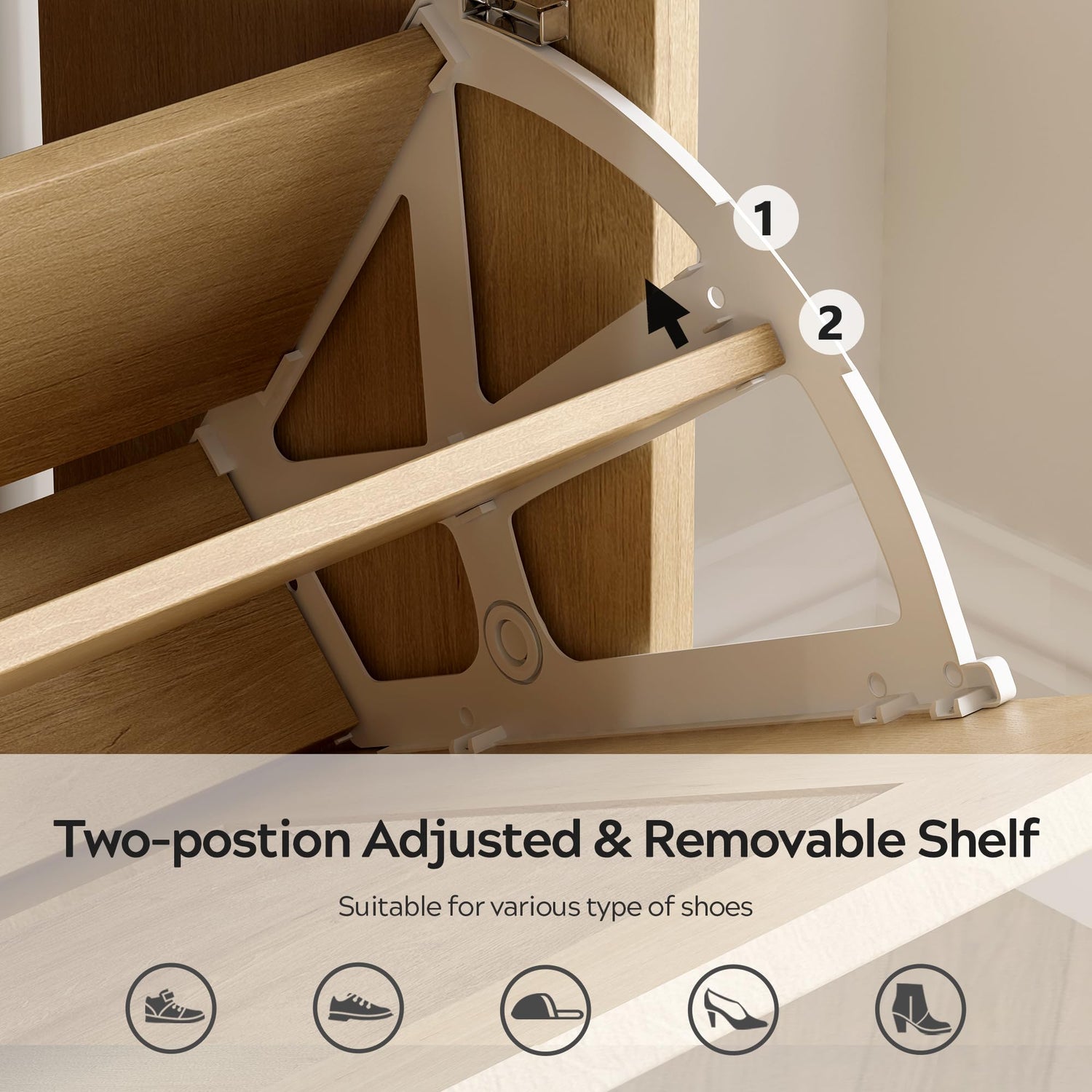 - 【Adjustable and Versatile Storage】: Each flip drawer of narrow shoe rack cabinet includes an adjustable or removable shelf to accommodate shoes of various heights, ensuring they are neatly stored. Additionally, the multi-purpose top offers ample space for your keys, umbrellas, bags, and plants, preventing them from falling and serving as a decorative display area