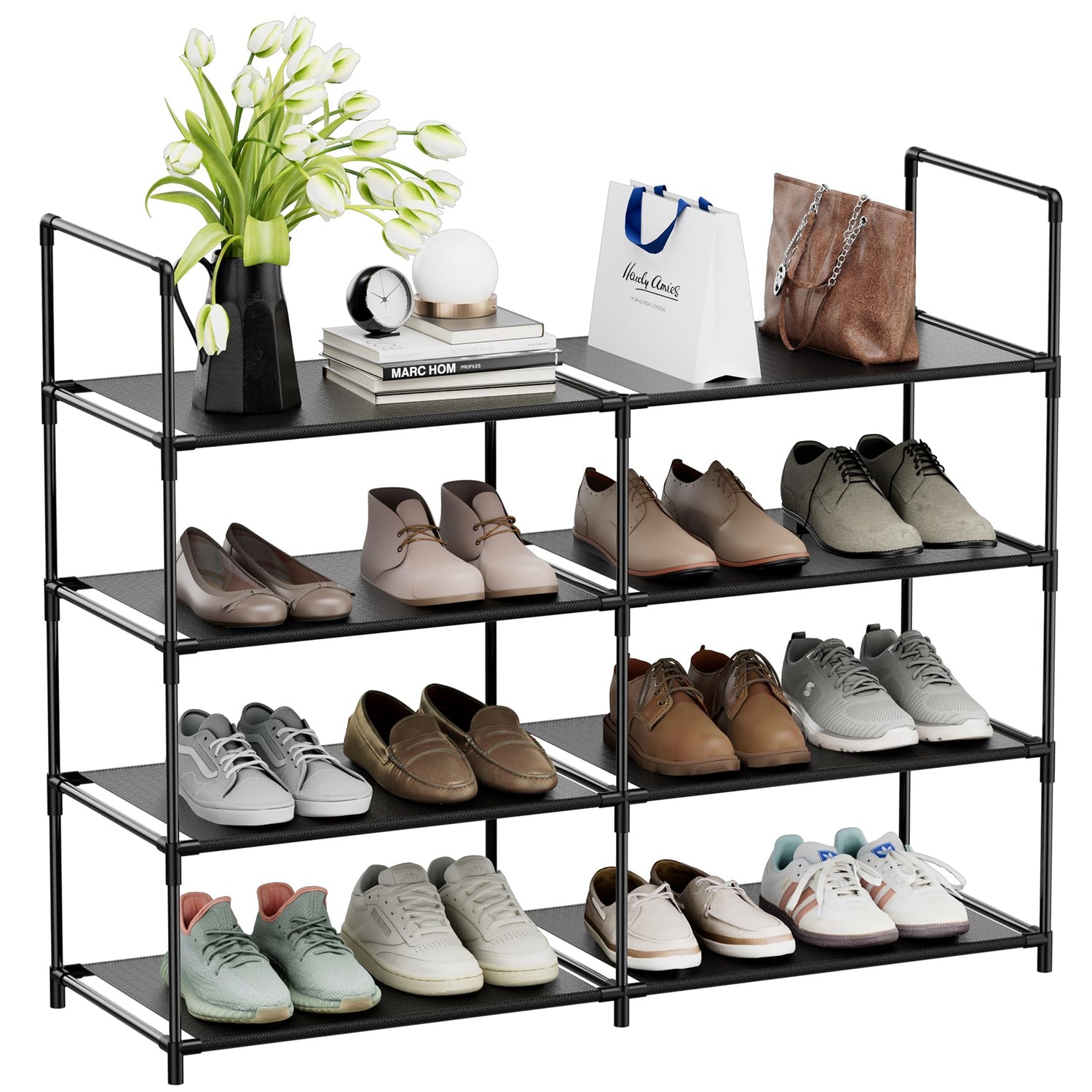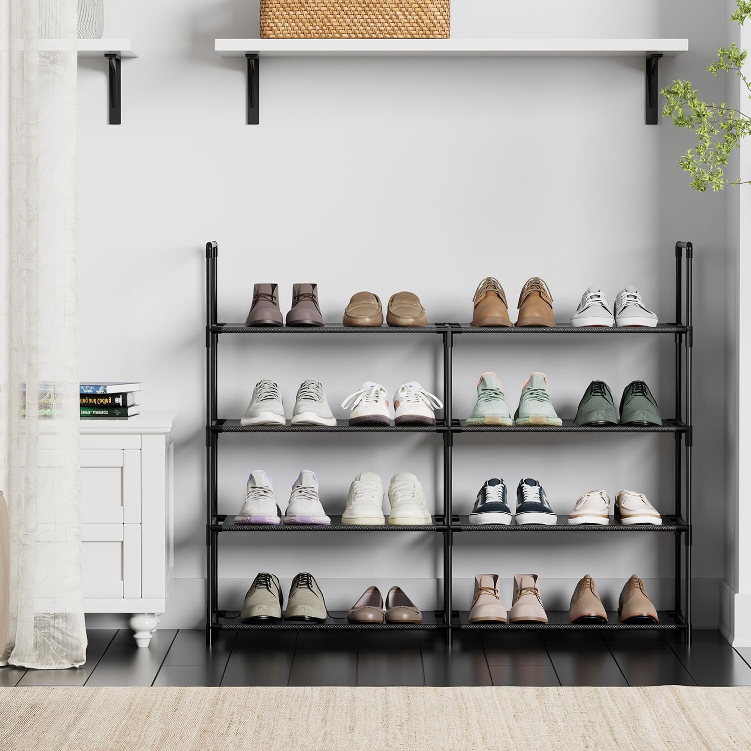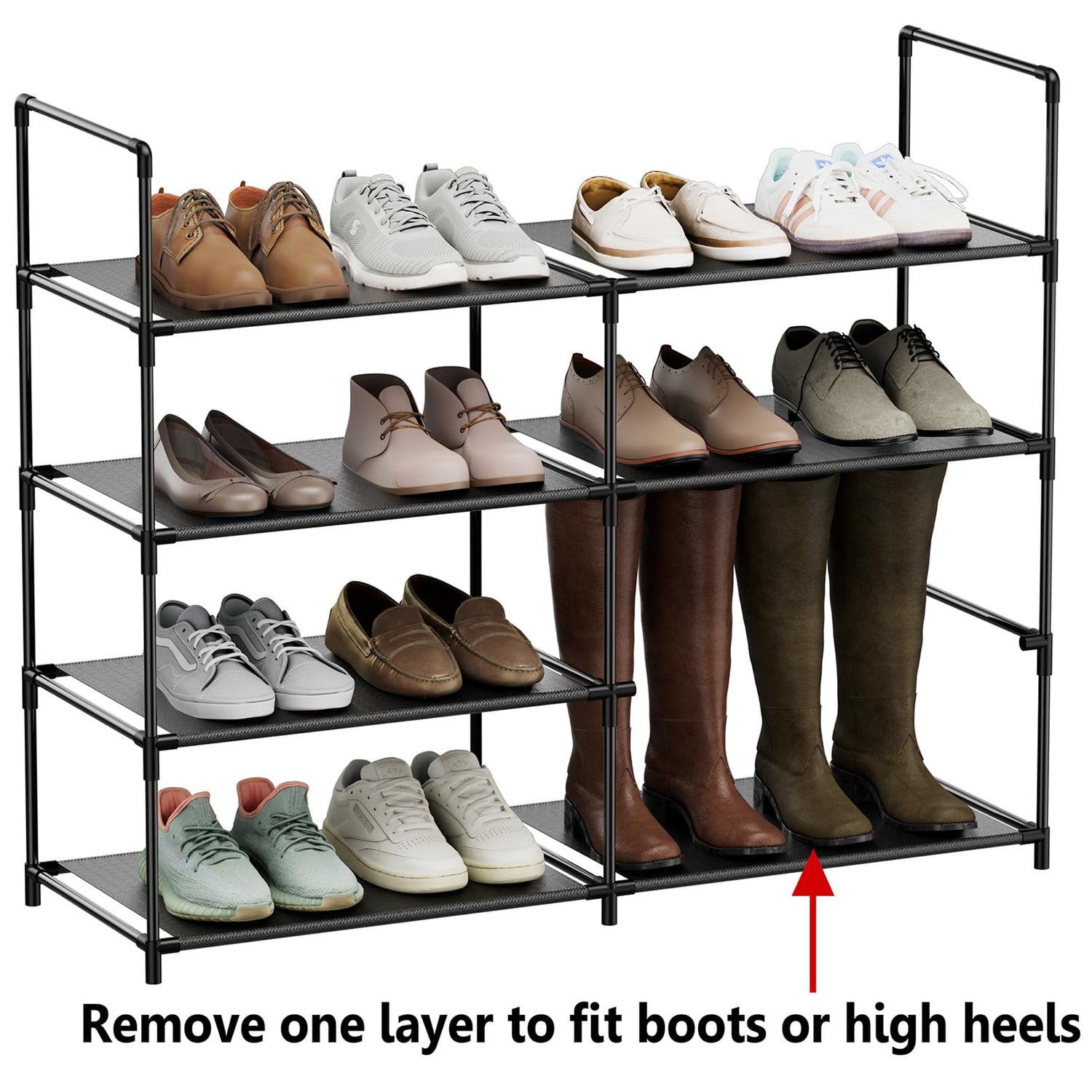 FIDUCIAL HOME 4 Tiers Shoe Rack Organizer 16-20 Pairs Stackable Shoe Storage Shelf Durable for Closet Entryway, Black