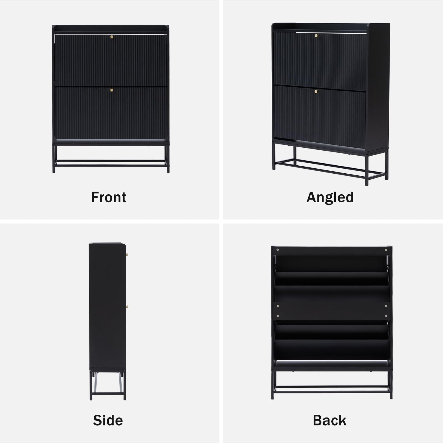 - Modern Shoe Cabinet: The hidden shoe storage cabinet with 2 flip drawers is sleek and modern, the design of the fluted panel make this shoe cabinet fit perfectly with modern room decor. It's spacious enough to accommodate 20-24 pairs of shoes, keeping shoes organized and out of sight