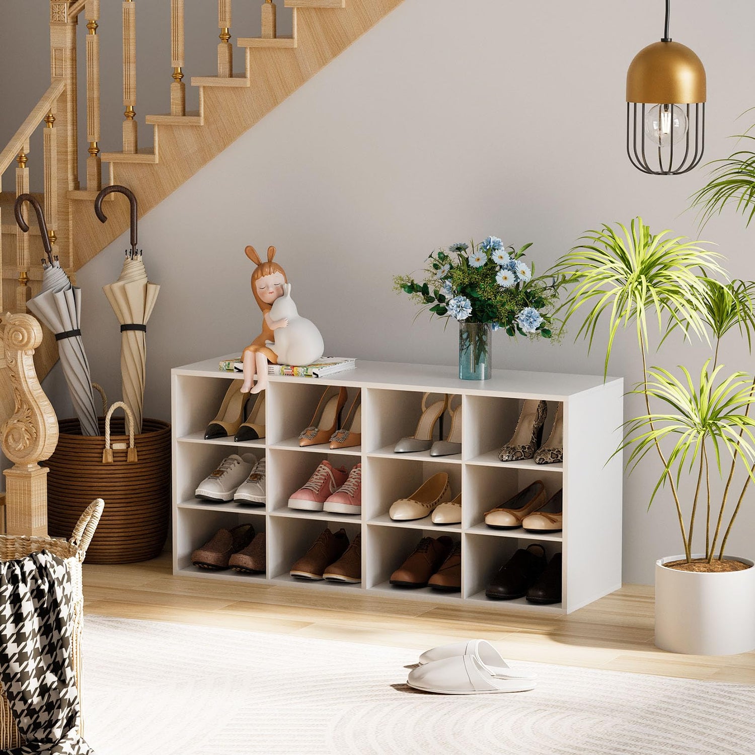 Garden 4 you Shoe Storage Bench, Cubby Shoe Rack with 12 Cubbies, 3-Tier Wood Shoe Rack Organizer, Shoe Organizer Cabinet for Entryway, Hallway, Closet and Garage, White