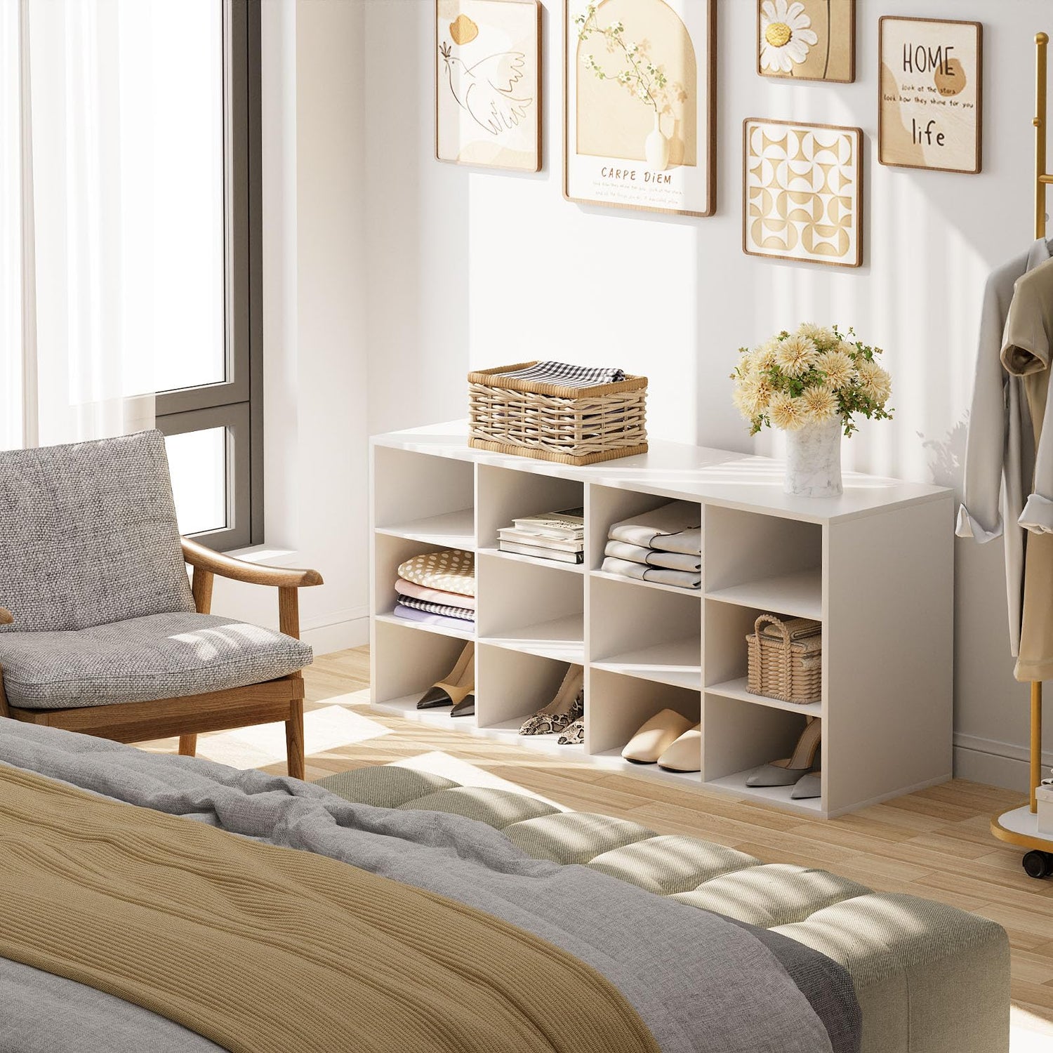 • 【Multifunctional】With 12 cubbies, not only can be used as a shoe cabinet to easily store 12 pairs of shoes. It can also be used as a Clothes storage cabinet at the end of the bed or a living room storage shelf for blankets, books, toys, and more.