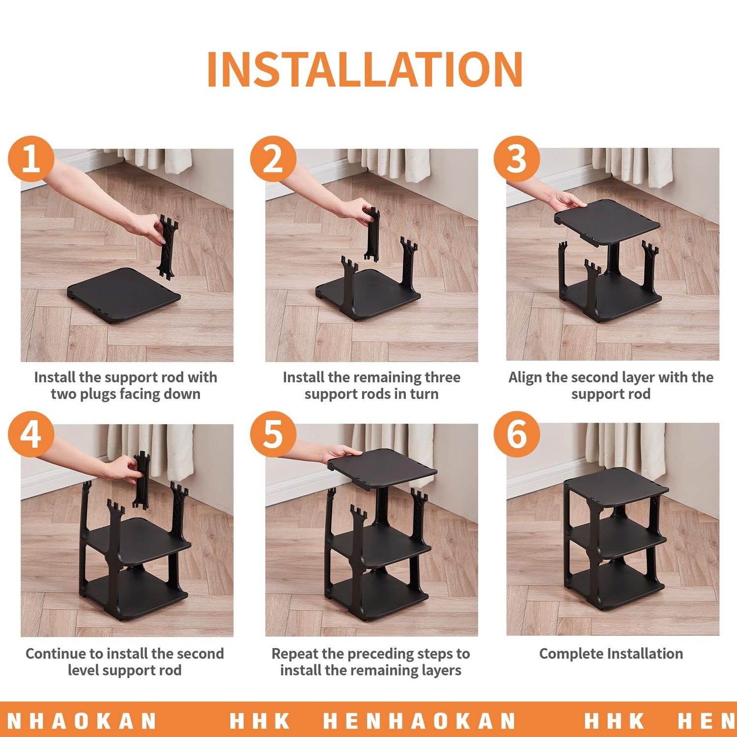 HHK HenHaoKan 5 Tiers Shoe Rack Organizer for Closet Shoe Holder Storage Narrow Plastic Vertical, Free Standing Shoe Rack Shelf for Entryway Stackable Stability DIY, Black