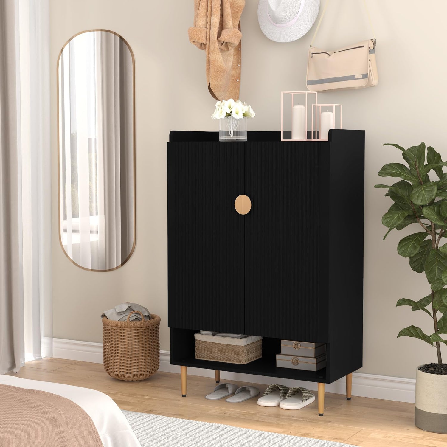 - 【SLEEK & ELEGAN HOME DECOR】Our HLR shoe cabinet is crafted with minimalist charm and fluted doors, giving it an eye-catching look that will impress your friends and perfect for a contemporary ensemble. The sleek gold metal handles and legs adds a warm touch and modern flair, making it a decorative addition to any corner of your house.