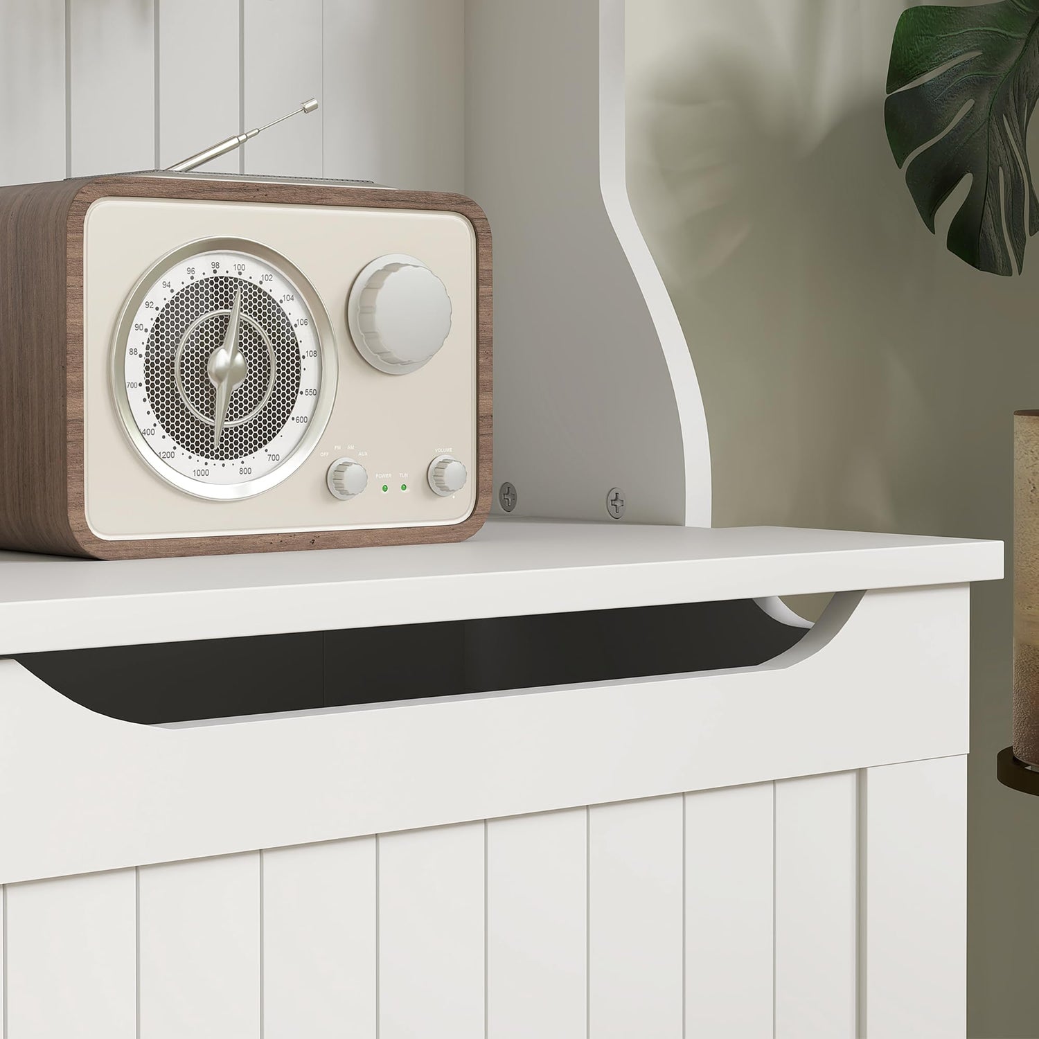 HOMCOM 3-In-1 Hall Tree with LED Lights and Shoe Storage, Standing Coat Rack with Shoe Bench, Entryway Furniture with Five Hooks, White