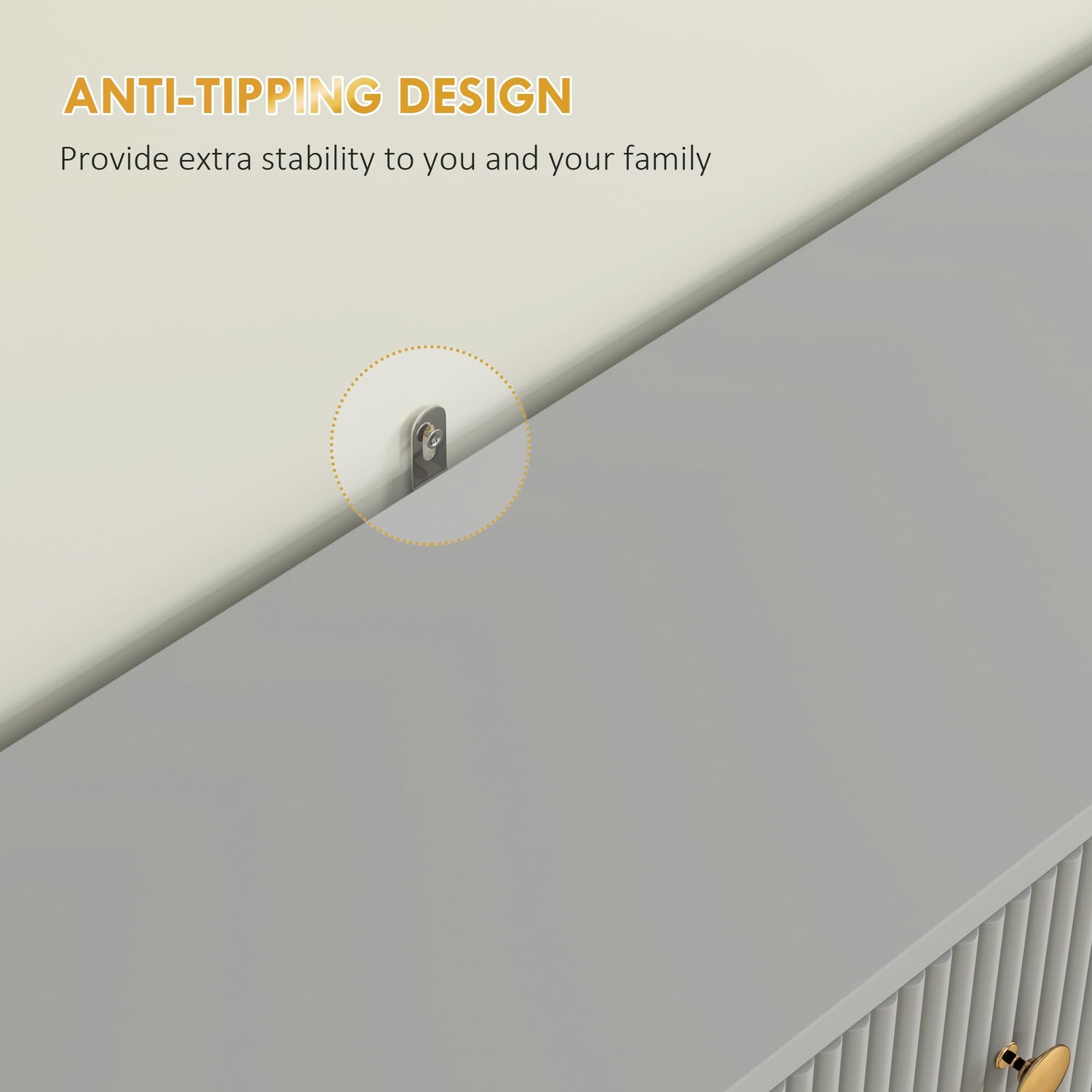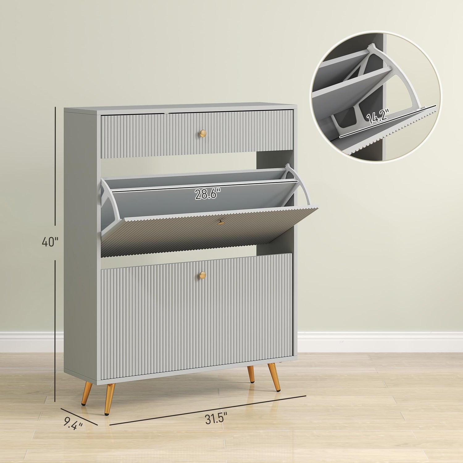 - Stylish Design: The shoe cabinet features a solid gray finish with elegantly wave-like fluted panels and sophisticated gold handles, enhancing your home's esthetic while offering a practical solution for shoe storage