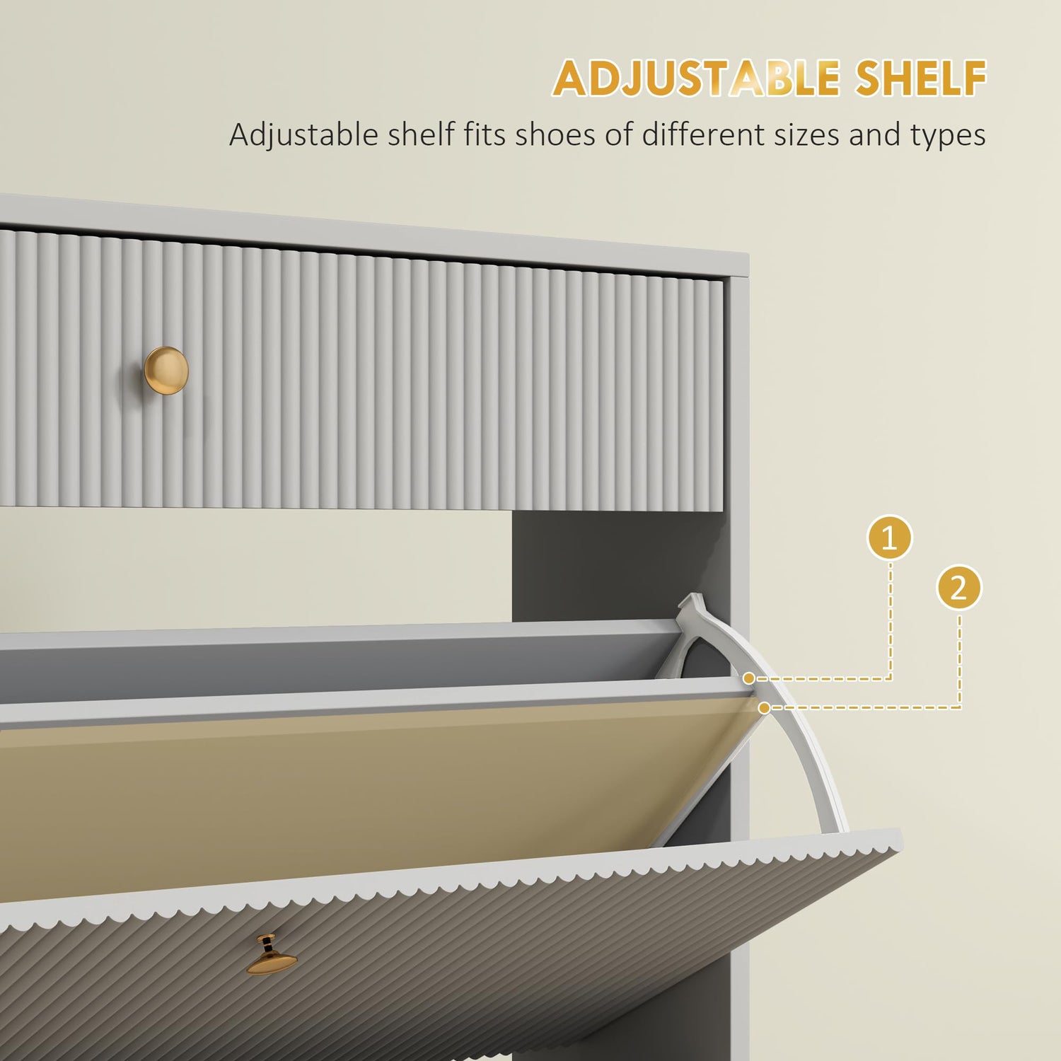 HOMCOM Narrow Shoe Cabinet with 2 Flip Drawers, Modern Shoe Storage Cabinet with Wave-Like Panels and Adjustable Shelves for 12 Pairs of Shoes, for Entryway Hallway, Gray