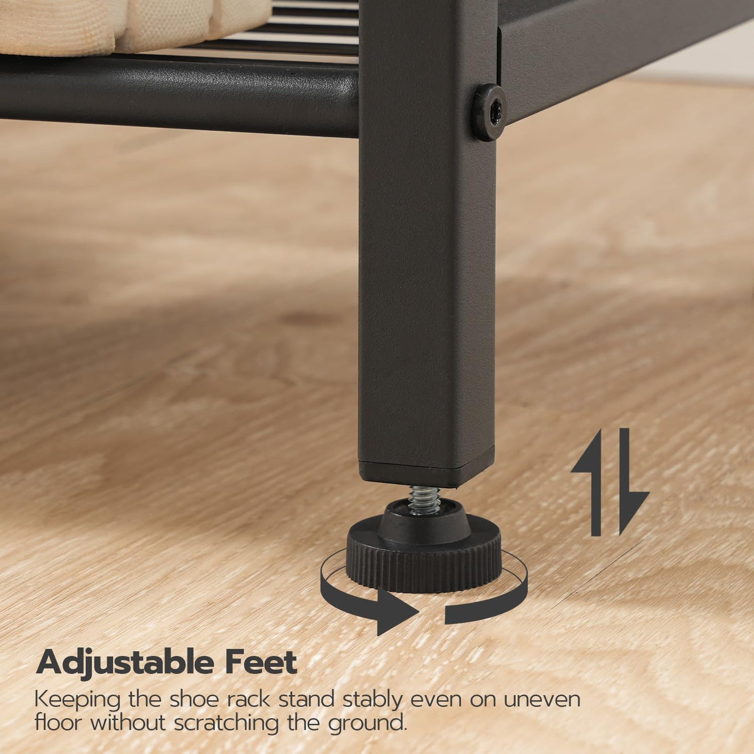 - Stable and Durable: This shoe organizer adopts quality metal and particleboard, presenting good load capacity. Each mesh shelf can bear 11 lb and the top 22 lb. With anti-tip kit and adjustable feet, the shoe rack easily adapts to different floors