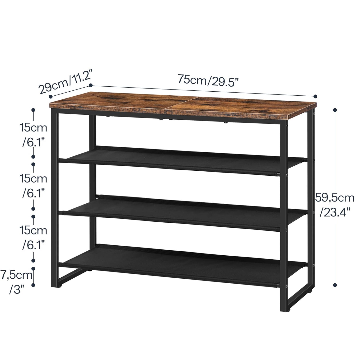HOOBRO Shoe Rack, 4 Tier Shoe Storage Organizer with 3 Oxford Fabric Shelves and Top Panel, Holds 12-16 Pairs of Shoes for Entryway and Closet, Industrial, Rustic Brown BF47XJ01G1