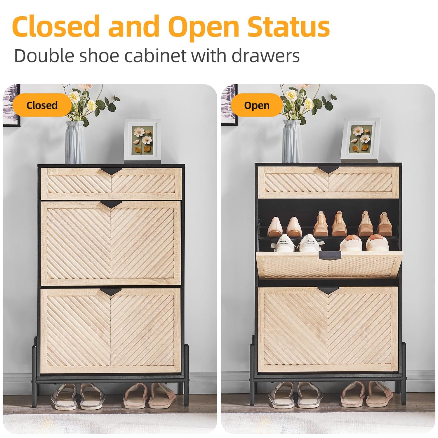 • 【Narrow Flip-Drawer Shoe Cabinet】: This narrow, freestanding shoe cabinet features a space-saving flip-drawer design that prevents shoe soles from dirtying the floor, keeping your home clean and tidy. It effectively reduces floor clutter. Unlike ordinary shoe racks, this cabinet is ideal for narrow spaces, optimizing space utilization and making your room look more organized