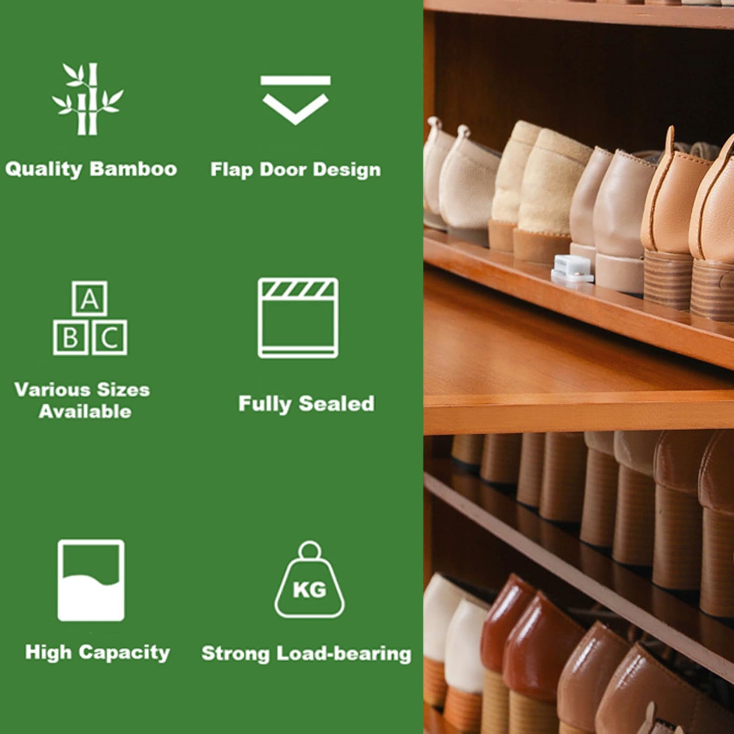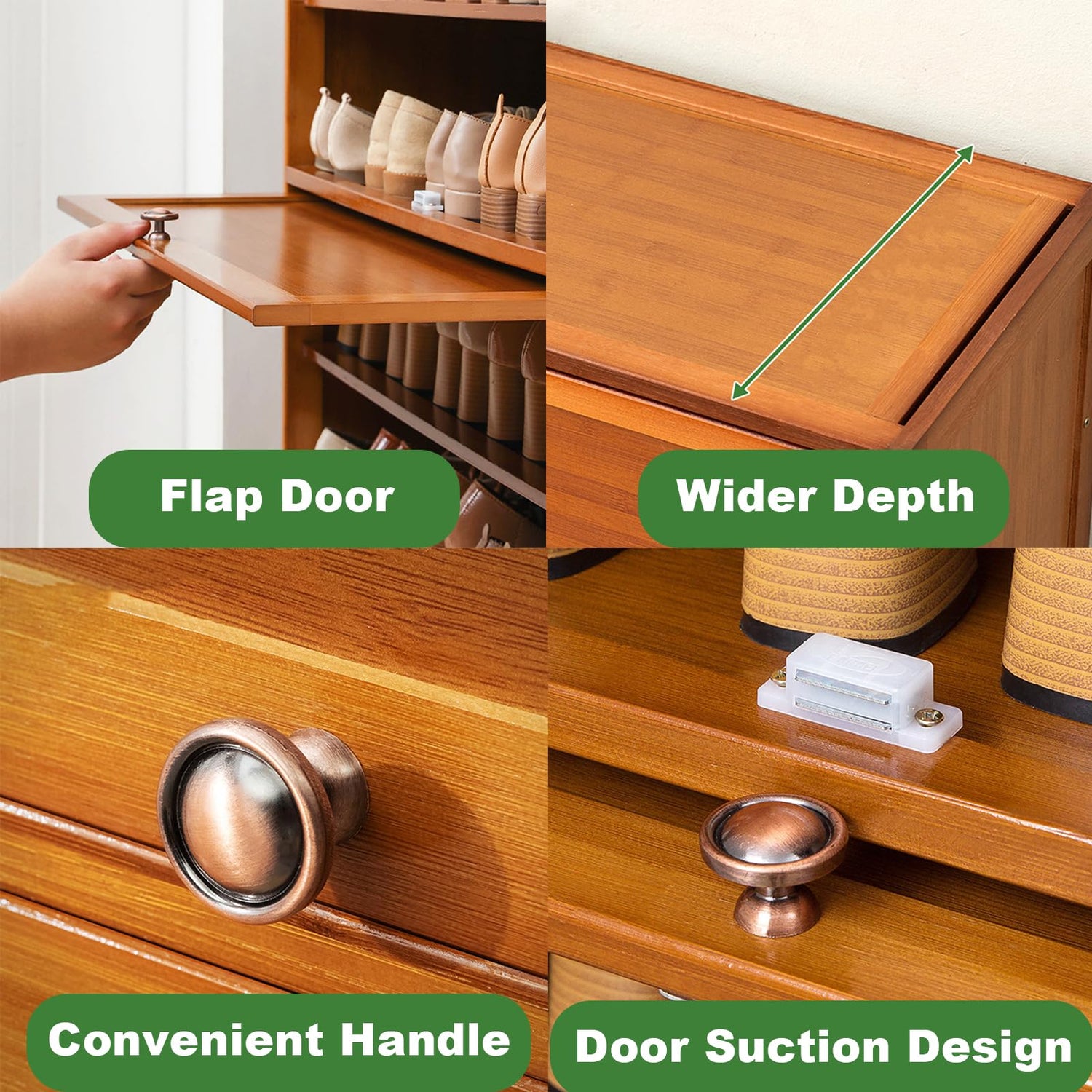 ILWorkTLs 4-Tier Bamboo Shoe Cabinet, Shoe Shelf Storage Organizer with Flip Door for Entryway, Hallway and Closet