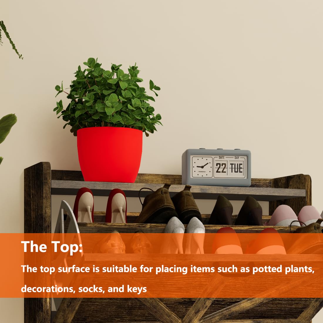 • 【FLIP DRAWERS SHOE CABINET】This freestanding shoe cabinet is equipped with two flap doors and features a space-saving flap drawer design that facilitates easy opening and closing,effectively protecting your shoes from dust and preventing pets from accessing them