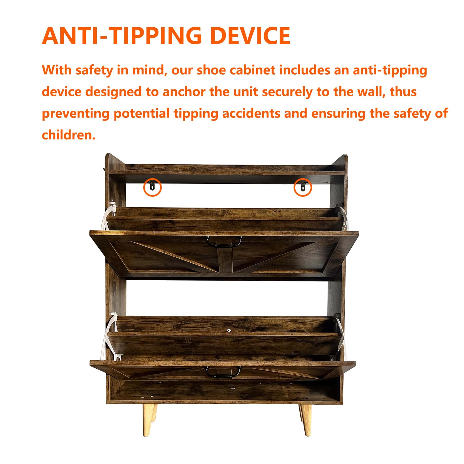 • 【ANTI-TIPPING DEVICE】With safety in mind,our shoe cabinet includes an anti-tipping device designed to anchor the unit securely to the wall,thus preventing potential tipping accidents and ensuring the safety of children.crafted from high-quality MDF wood and reinforced with solid wood legs,this design guarantees structural integrity and superior load-bearing capacity