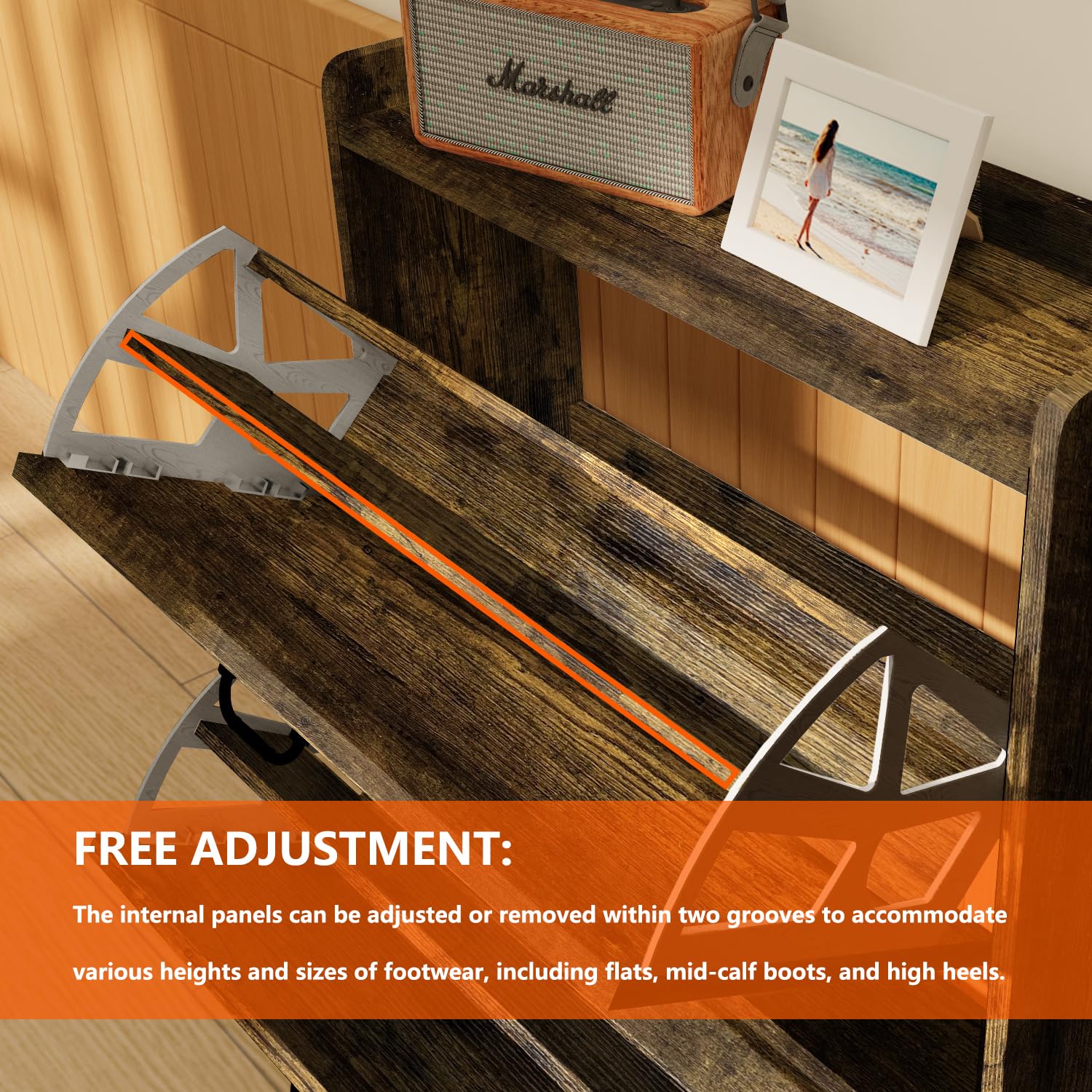 JOKOLO Shoe Cabinet Storage,Farmhouse Freestanding Organizer with 2 Flip Drawers and 4 Wooden feet,Narrow Shoe Rack Cabinet for Entryway,Rustic Brown