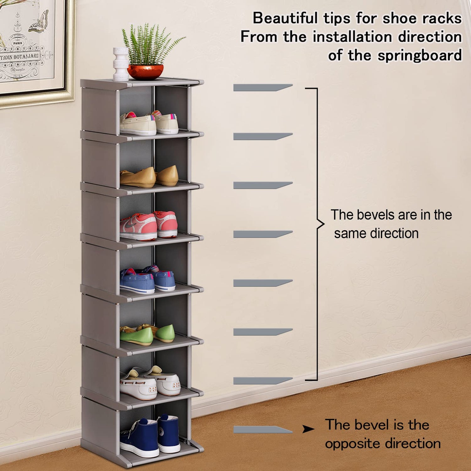KANAV 8 Tiers Shoe Rack - Vertical Narrow Shoe Shelf Storage Organizer Sturdy Space Saving - Tall Narrow Shoe Rack for entryway Closet Hallway