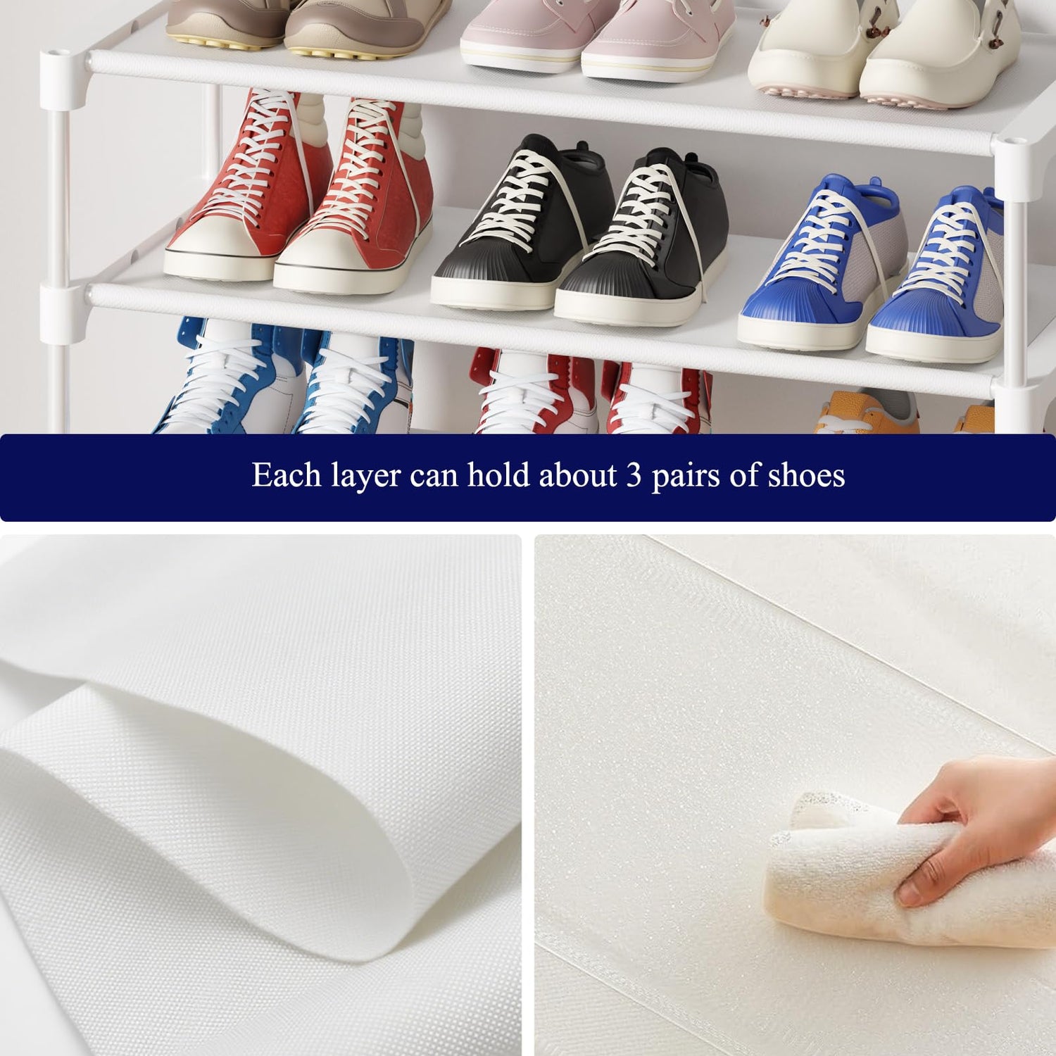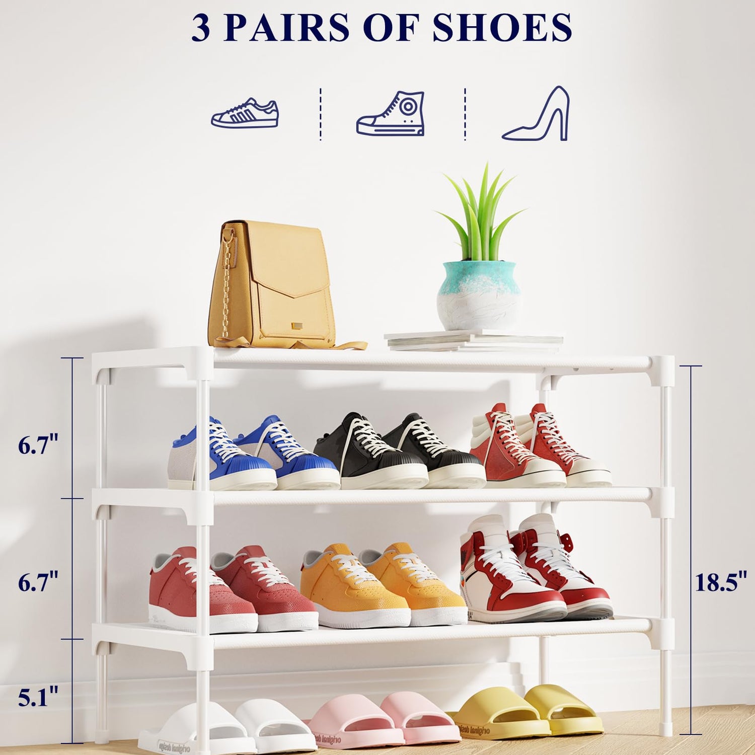 Kitsure Shoe Rack - Non-Woven Shoe Rack Shelf, Shoe Organizer for Closet, Entryway, Garage & Corridor, Stackable Shoe Shelves, 27.5" Wide - 3 Tier, White