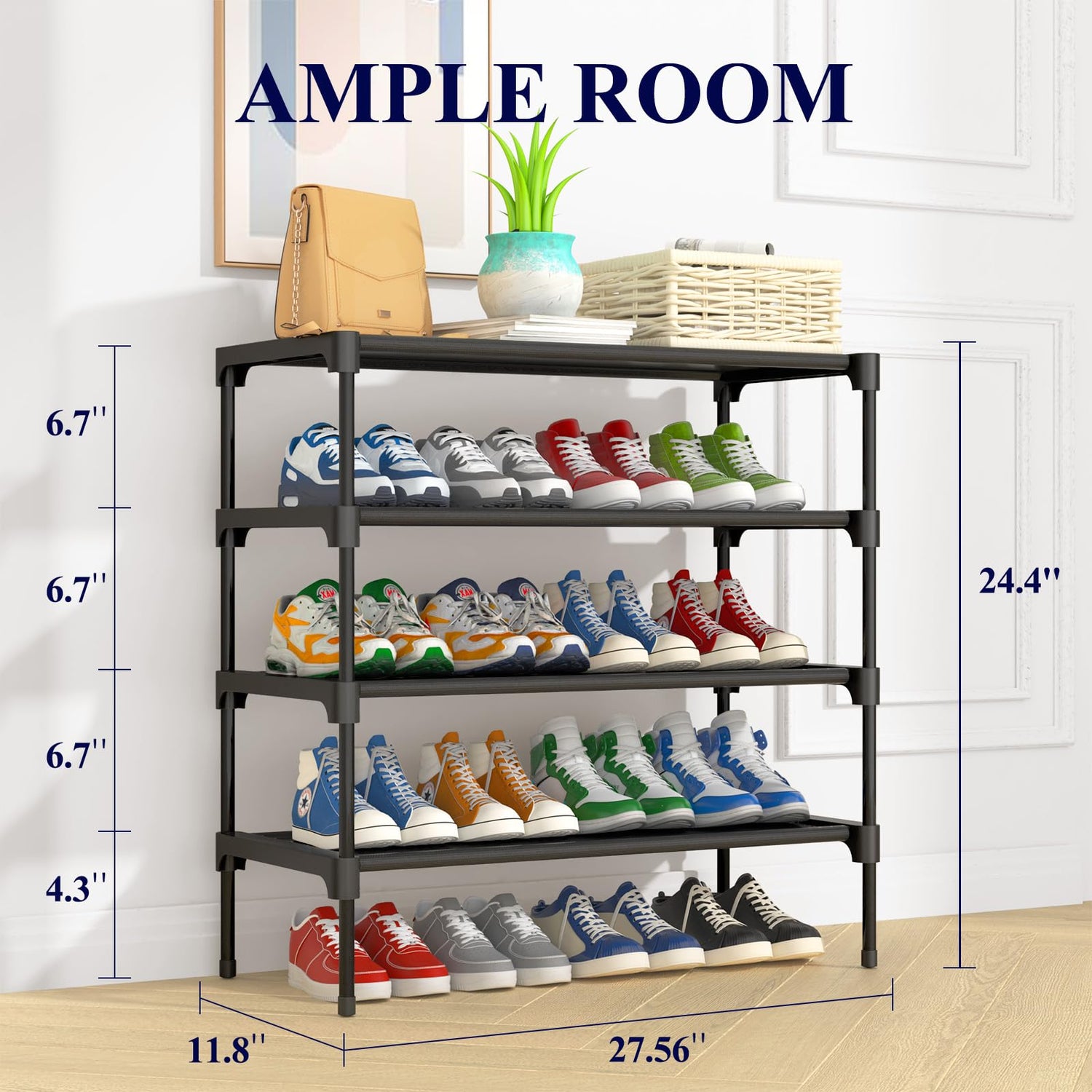 Kitsure Shoe Rack - Non-Woven Shoe Rack Shelf, Shoe Organizer for Closet, Entryway, Garage & Corridor, Stackable Shoe Shelves, X-Large, Black
