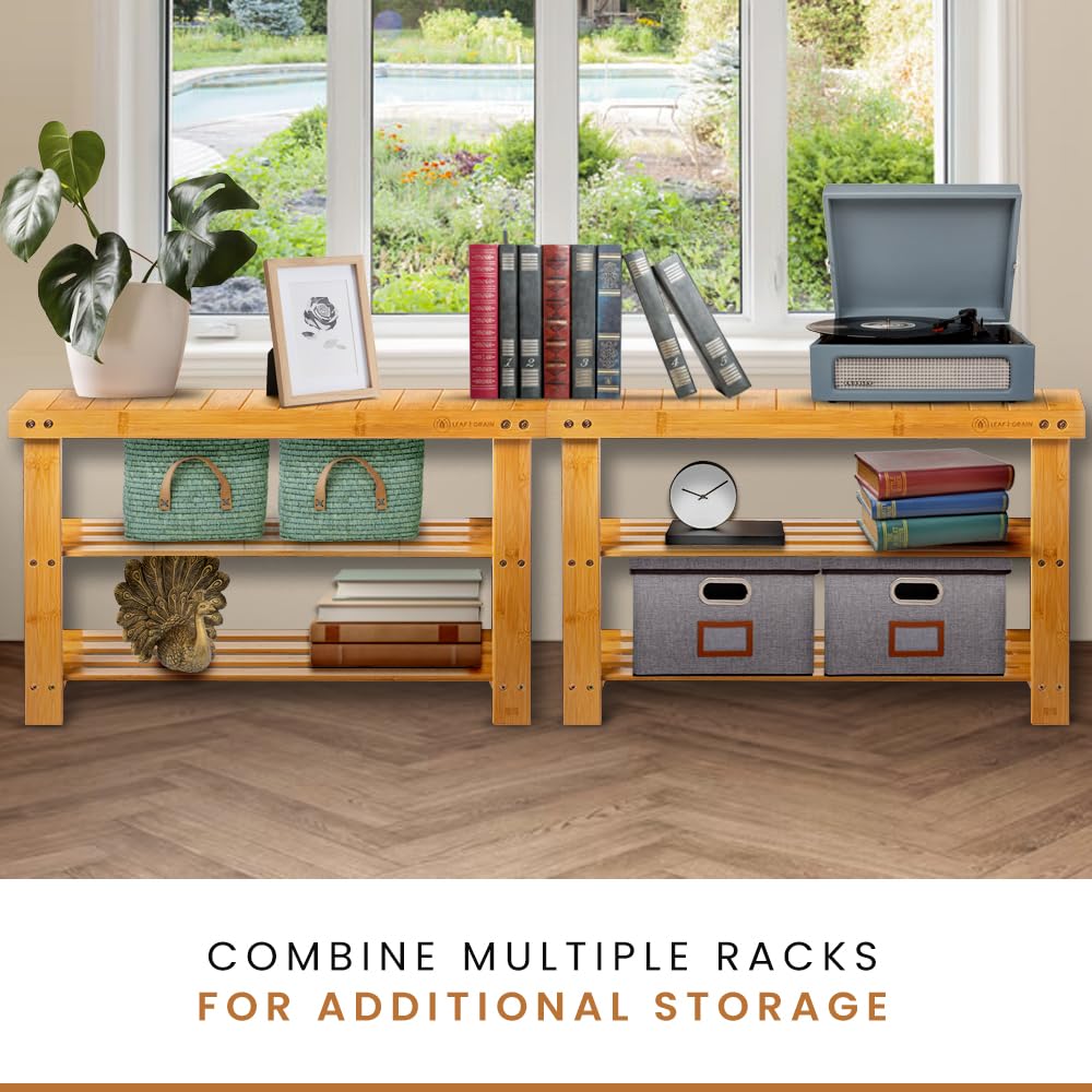 Leaf & Grain Bamboo Shoe Rack - Shoe Storage Bench for Front Door Entrance - Entryway Bench with Shoe Shelf, Shoe Storage Organizer, Wooden Shoe Rack, Durable Shoe Bench for Home (Natural)