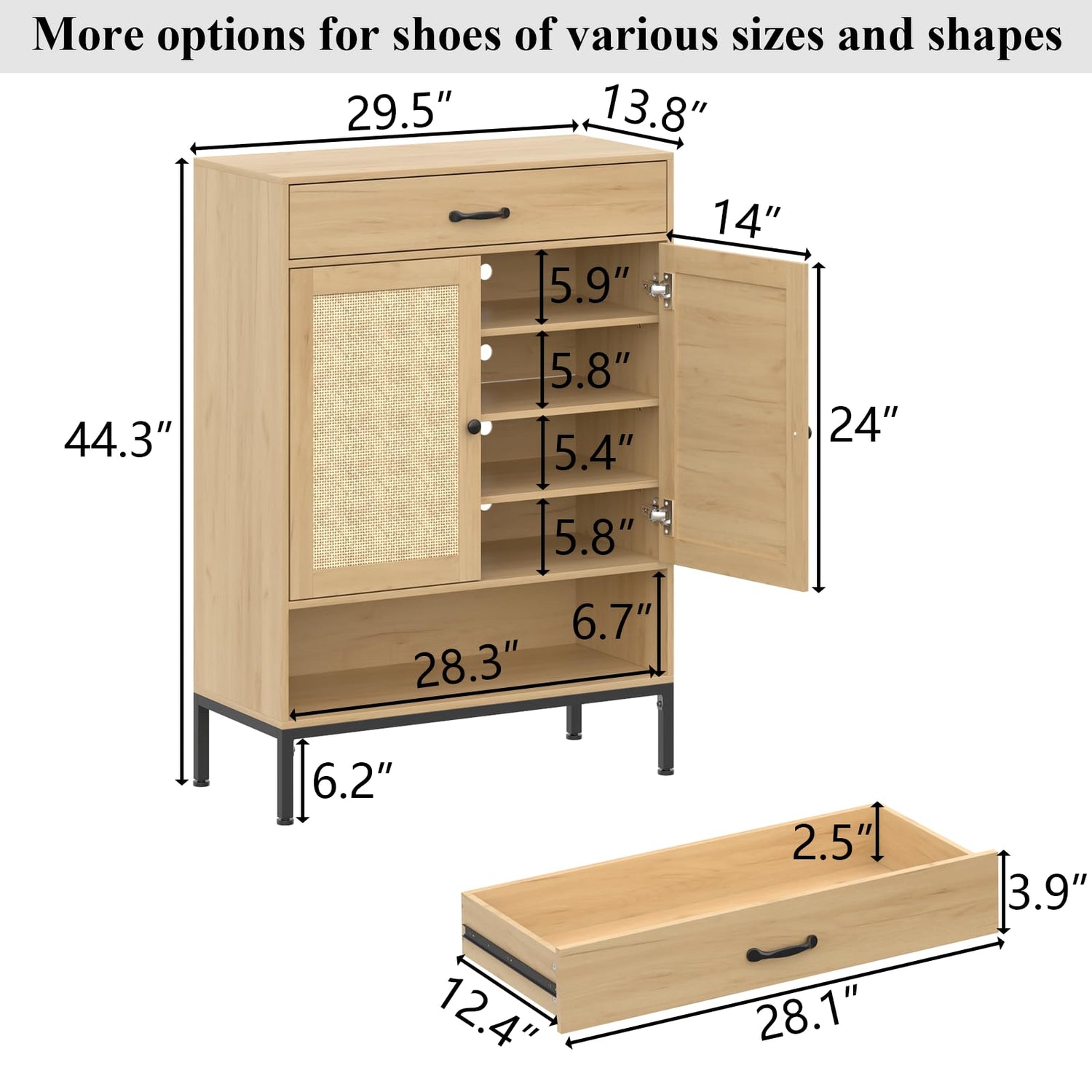 Loomie Rattan 5-Tier Shoe Storage Cabinet with Doors, Drawer & Cubby, 44.3" Boho Shoe Organizer for Entryway Hallway Closet (Natural)
